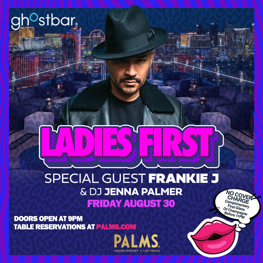 Ghostbar and the Palms Hotel and Casino Resort presents "Ladies First" Fridays. Doors open at 9pm with complimentary admission for everyone and all ladies will receive their first glass of champagne FREE before 11pm. Resident DJ Jenna Palmer will be joined by Frankie J performing live overlooking the Las Vegas Strip! Must be 21 and over with proper I.D. Entertainment Subject to change Management Reserves All Rights