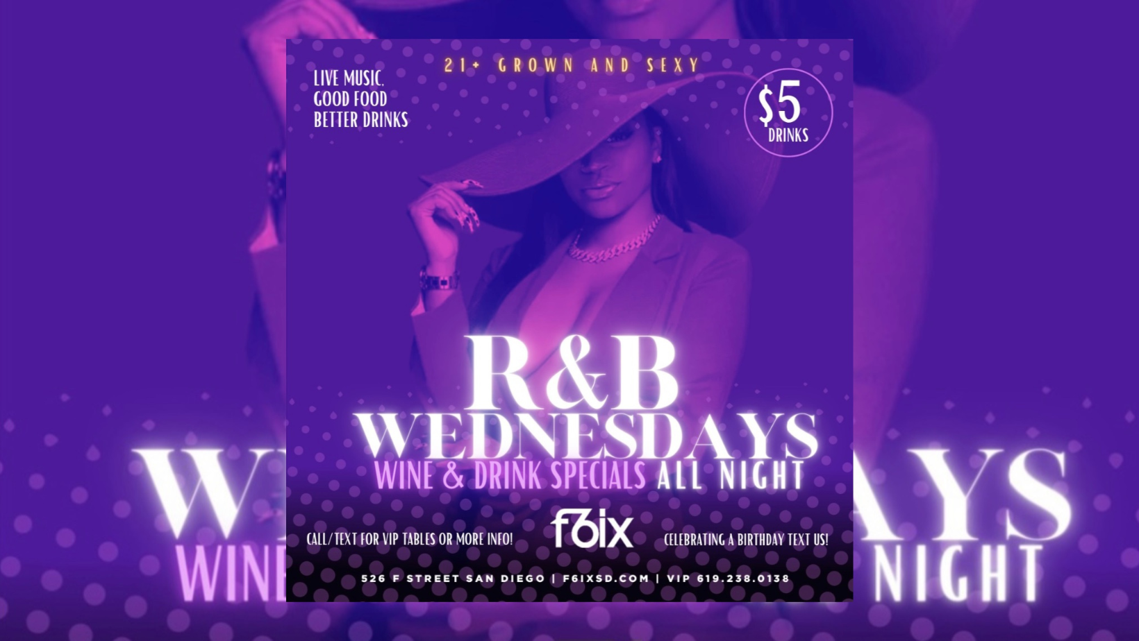 R&B Wednesdays. Grown and Sexy. Playing all the older R&B Hits. Great Music and even Better Drinks