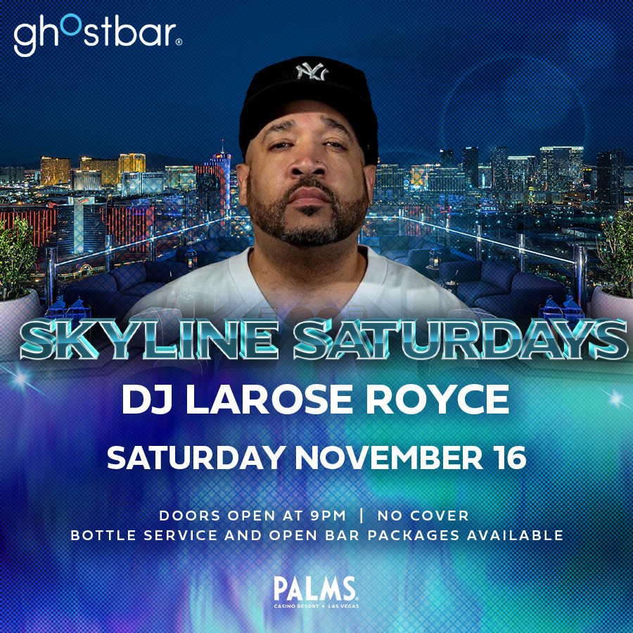 Ghostbar and the Palms Hotel and Casino Resort presents "Skyline Saturday". Doors open at 9pm with cocktail features on our new "Specialty Cocktail" menu until 10pm. Ghostbar Resident DJ LaRose Royce from 10p - close. Come and enjoy the best view of Las Vegas on our outdoor patio 55 stories above the city. Everyone has a "Ghost" story.