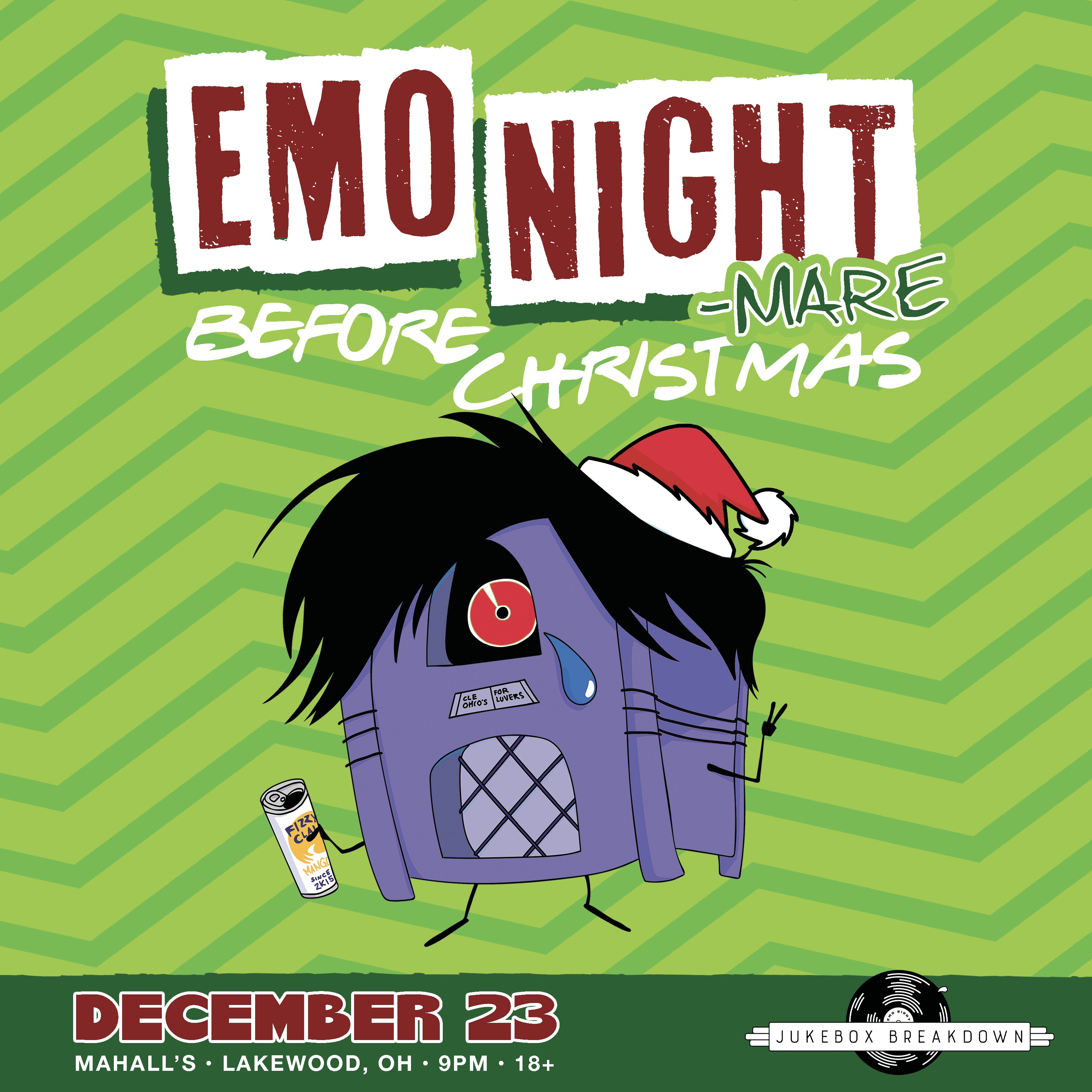 Jukebox Breakdown aka Emo Night CLE presents EMO NIGHTmare before Christmas a special holiday-themed Emo Night. Come party with us before the holidays! Mahall's 9PM doors 18+ Presented by Mahall's. 18+