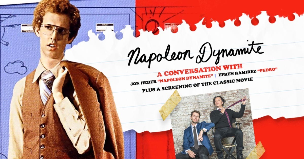 This unique evening includes a full screening of "Napoleon Dynamite" followed by a lively, freewheeling, moderated discussion with fan-favorite cast members; Jon Heder (Napoleon Dynamite) and Efren Ramirez (Pedro).