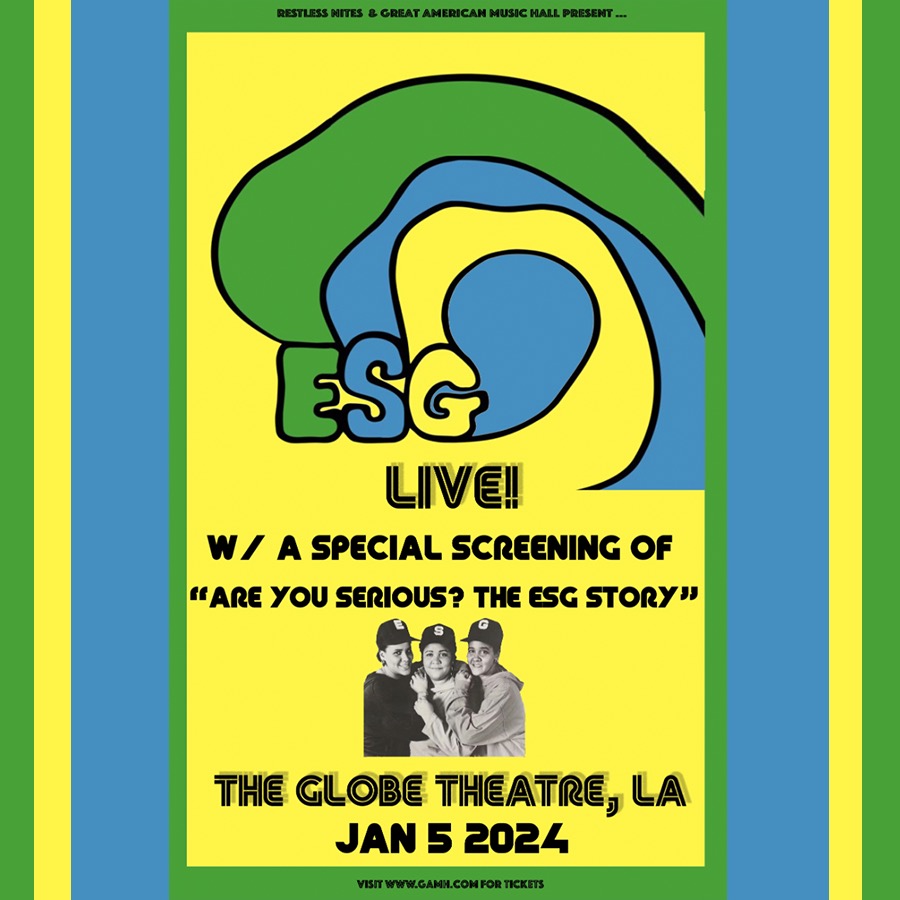 Restless Nites, The Great American Music Hall SF and Globe Theater are extremely proud to present legendary Post-Punk, Post-funk, proto Hip-Hop, Electro, House, No-Wave and New Wave club pioneers ESG for an exclusive one night only live performance. // 18+