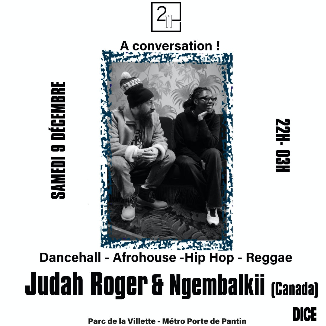"A conversation" : Judah Roger & Ngembalkii (Canada) Afrohouse - Reggae - Dancehall - HipHop Présenté par croixement pour tous. Réservé aux plus de 18 ans