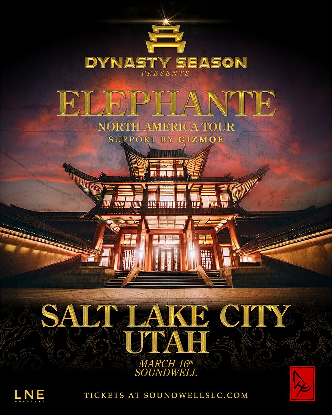LNE Presents ELEPHANTE SUPPORT: GIZMOE DOORS: 9:00PM | 21+ EVENT ONLY VENUE LOCATION: Soundwell SLC 149 W 200 S Salt Lake City, Utah 84101 CARD ONLY AT THE BOX OFFICE ALL SALES FINAL, NO REFUNDS OR EXCHANGES