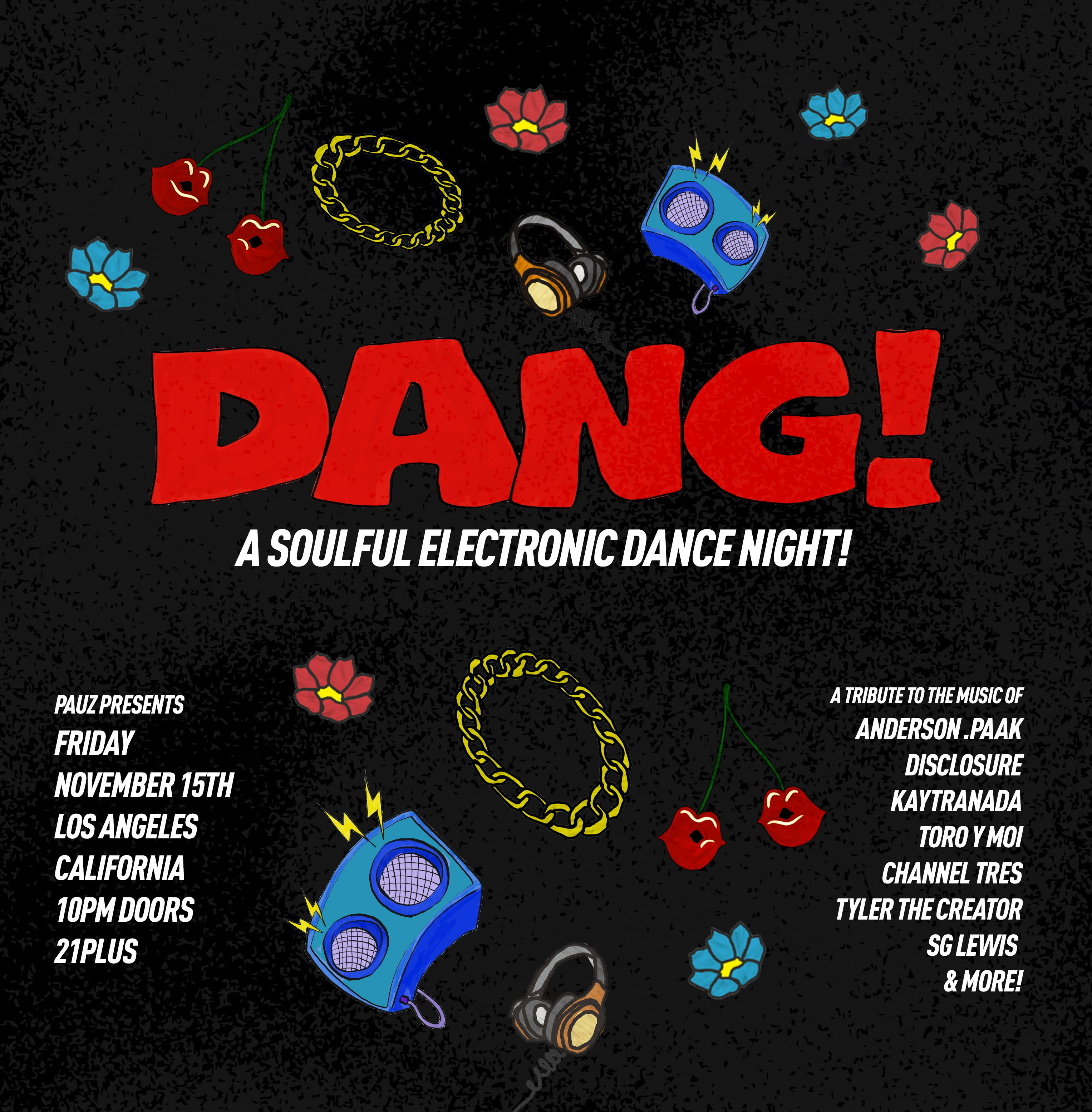 A celebration of only the best music, spanning from house to R&B. Dancey, bouncey, and transcending genres, DANG! is the ultimate dance party for fans of left of center electronic with soulful and rhythmic influences. This is the only party that expertly combines a top-tier mix of groovy house music & catchy R&B. Come get your dose of dopamine on the dancefloor, while you lose yourself in the intoxicating rhythms from songs from some of your favorite artists, like Kaytranada, Disclosure, Channel Tres + more.