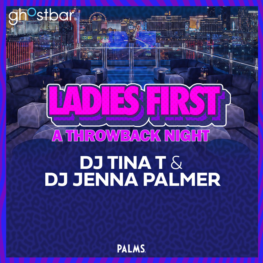 Ghostbar and the Palms Hotel and Casino Resort presents "Ladies First" Fridays. Doors open at 9pm with complimentary admission for everyone and all ladies will receive their first glass of champagne FREE before 11pm. Resident DJ Jenna Palmer will be joined by Guest DJ Tina T. playing all the hits of the 80's, 90's, and early 2000's. Must be 21 and over with proper I.D. Entertainment Subject to change Management Reserves All Rights