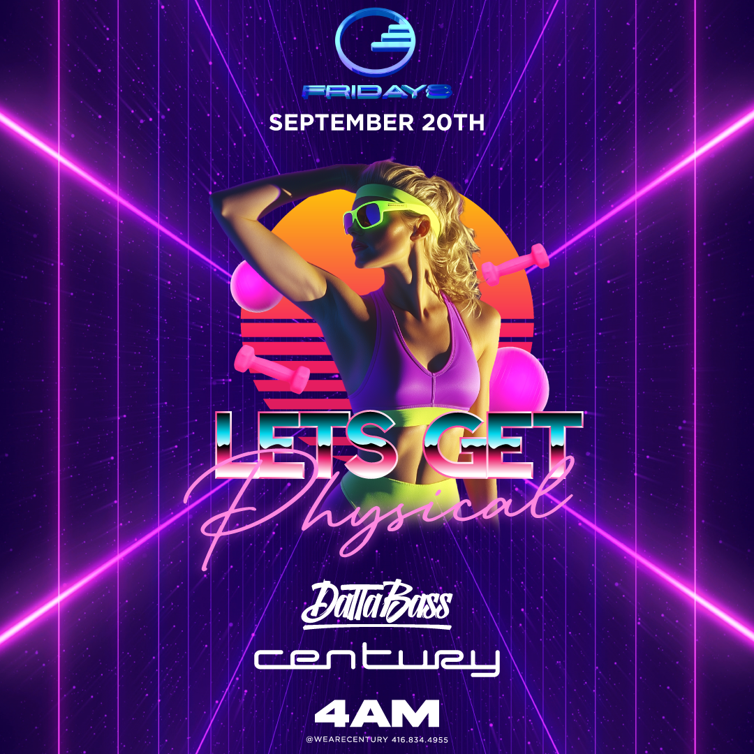 Lets Get Physical! Join us for our "Lets Get Physical" theme night. Music Programming includes a mixture of hip hop and top 40 Dance hits by DJ Dattabass.