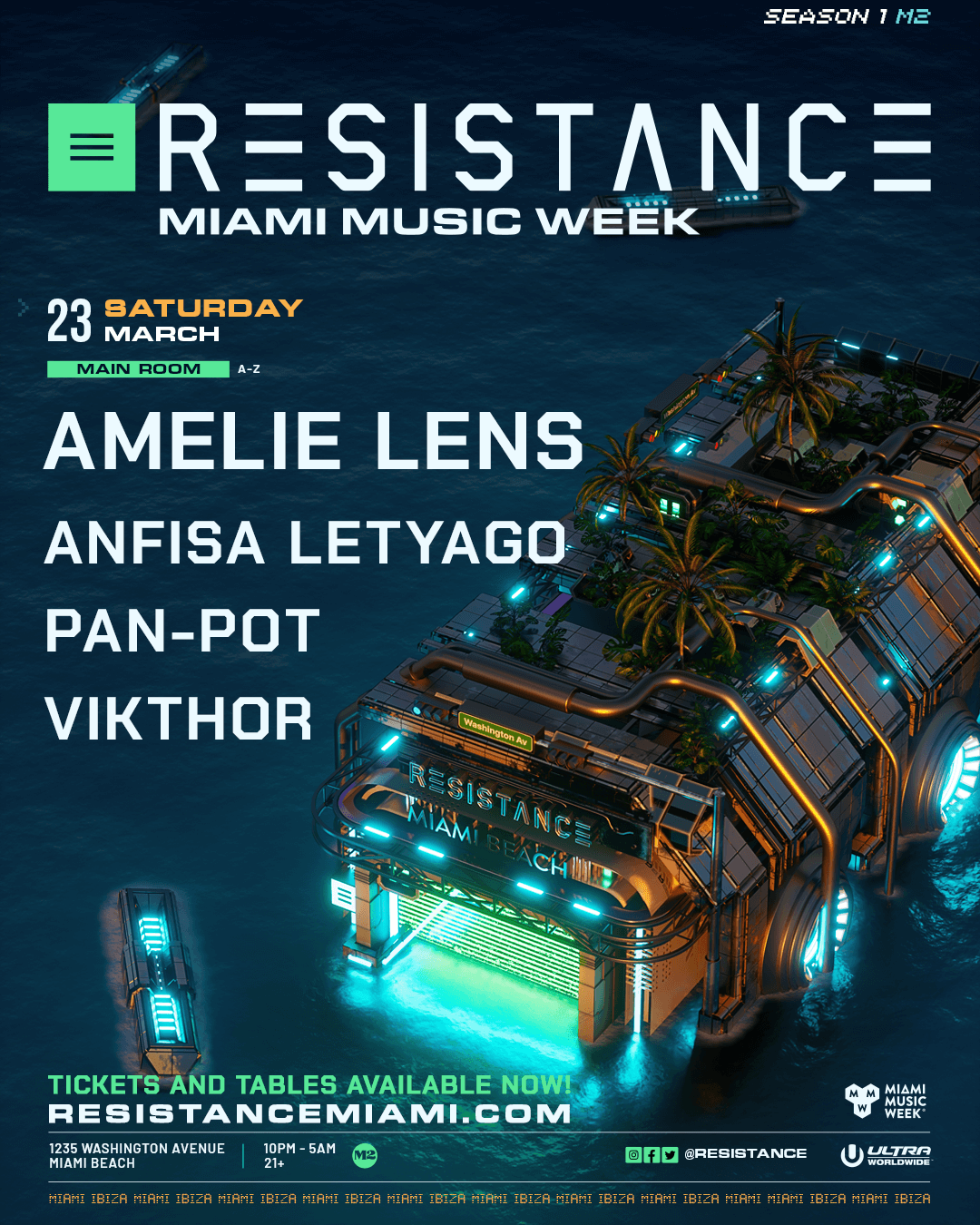 RESISTANCE Miami Music Week continues on Saturday, March 23 featuring Amelie Lens, Anfisa Letyago, Pan-Pot and Vikthor! Presented by RESISTANCE Miami. This is a 21+ event