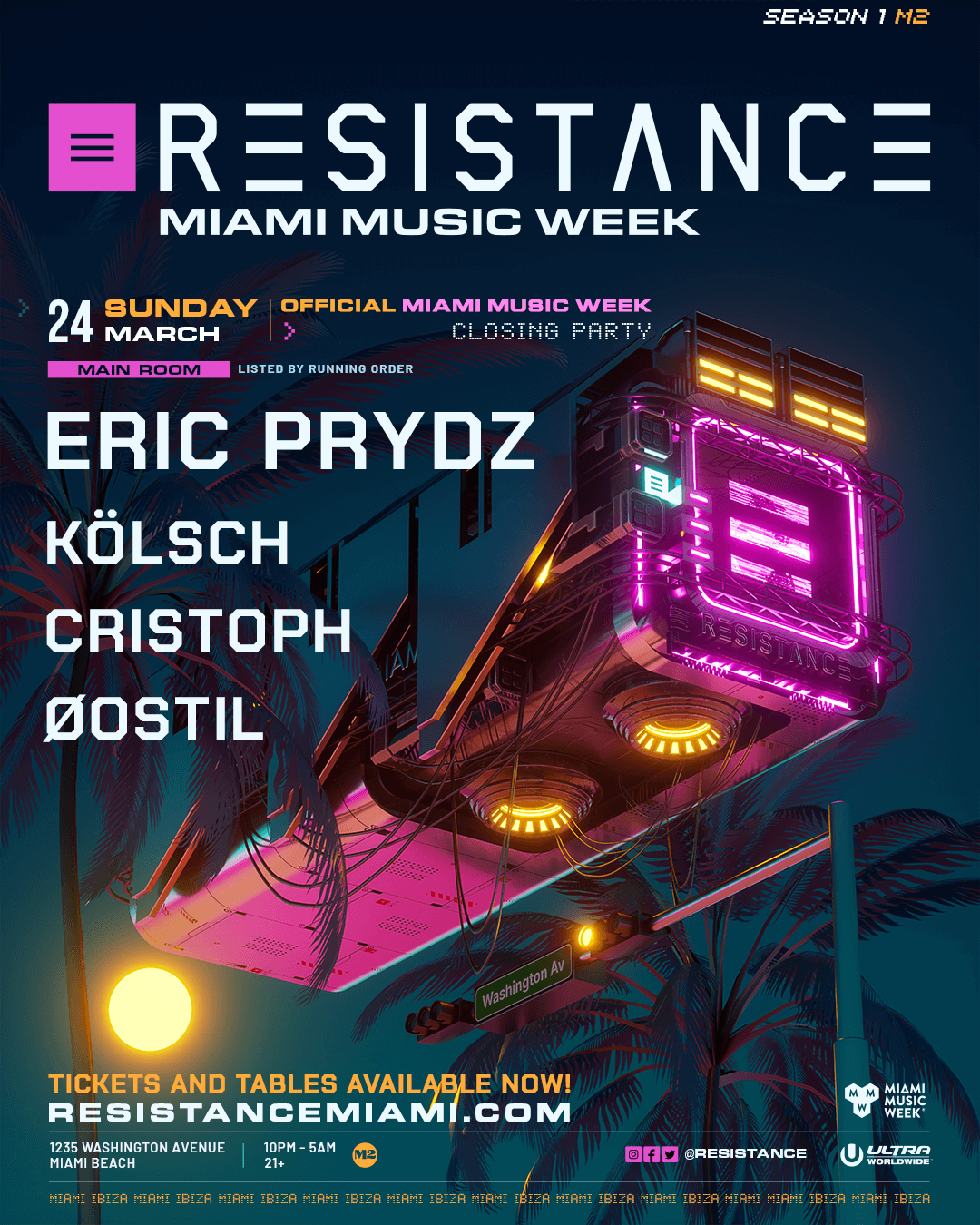 RESISTANCE Miami Music Week concludes with the Official MMW Closing Party on Sunday, March 24 featuring Eric Prydz, Kölsch, Cristoph and Øostil! Presented by RESISTANCE Miami. This is a 21+ event