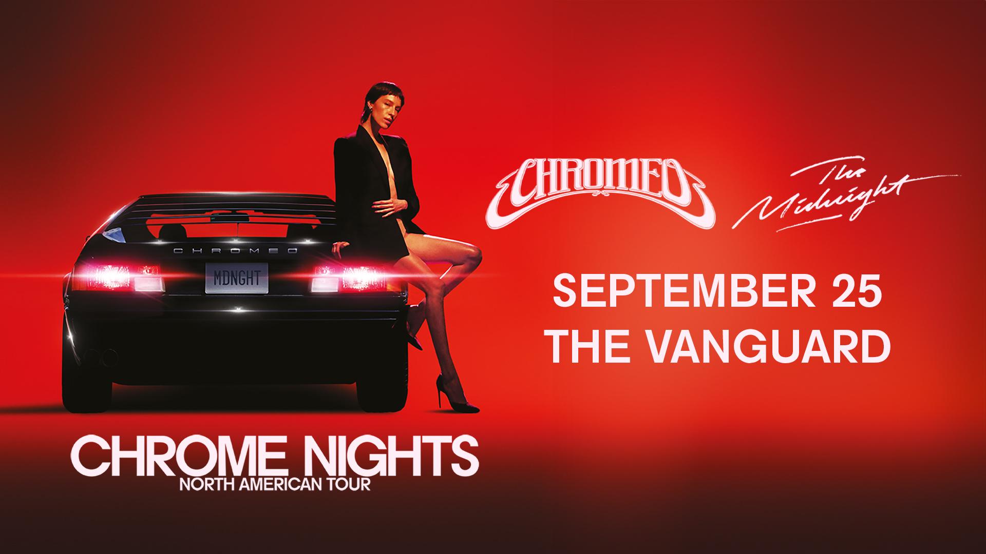 Join us on Wednesday, September 25, 2024 for an epic night with Chromeo & The Midnight presents CHROME NIGHTS North American Tour at The Vanguard in Orlando, Florida.