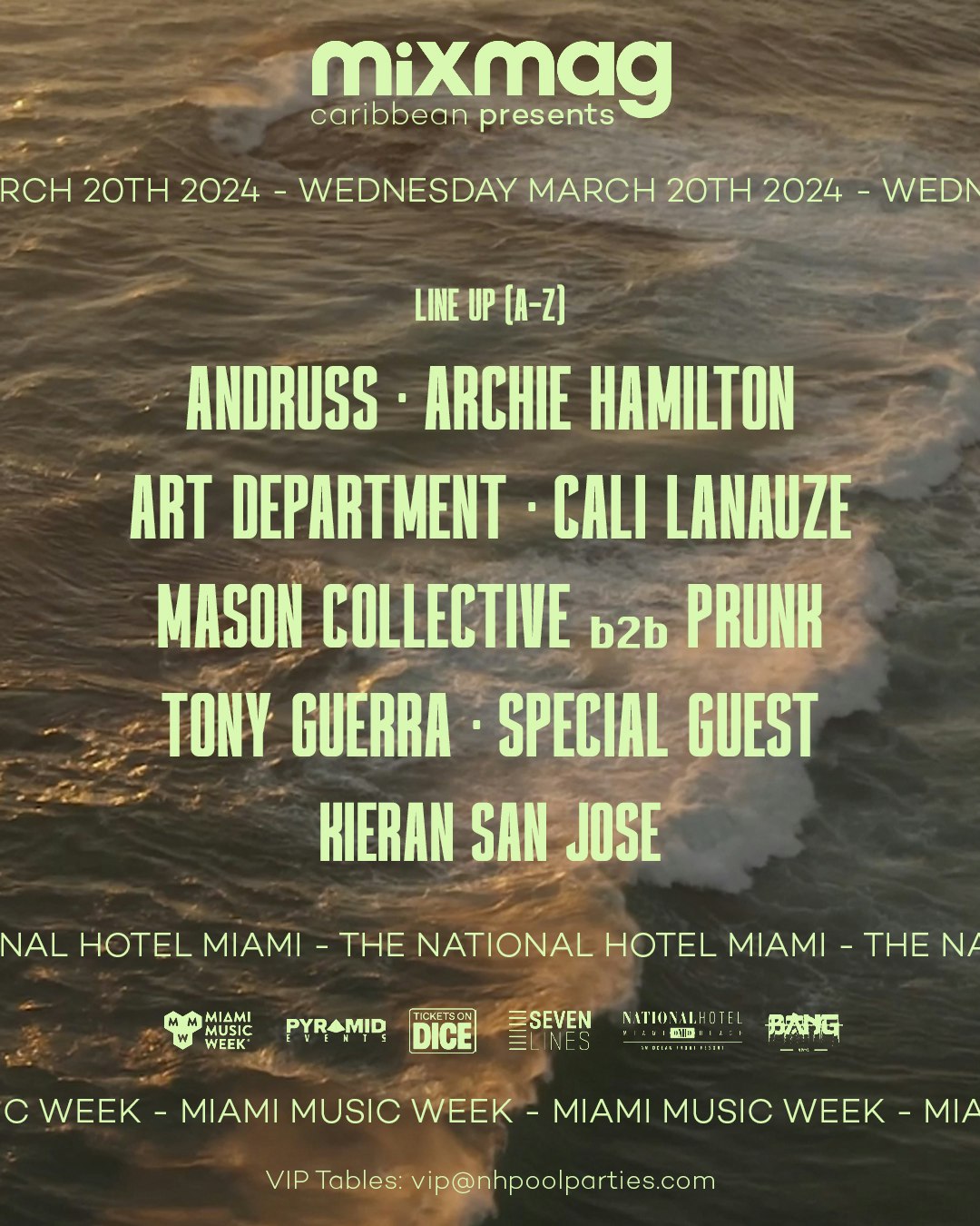 Mixmag presents the Miami Music Week opening Pool Party at The National Hotel featuring some of the hottest names in house and techno music today. Rain or Shine -- No Refunds Presented by Mixmag This is an 21+ event