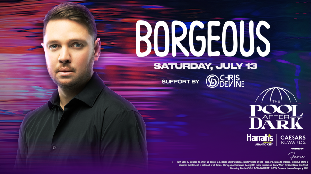 Join us at Harrah's Resort for an electrifying Saturday night at The Pool After Dark, where the vibrant Atlantic City nightlife comes to life. Dive into an evening filled with the most sought-after things to do, featuring the sensational Borgeous. This American DJ and music producer, known for his big room house, Dutch house, and future house beats, has achieved three Billboard Dance Radio Top 10s and captivated audiences worldwide with his high-energy performances and chart-topping hits like "Tsunami".