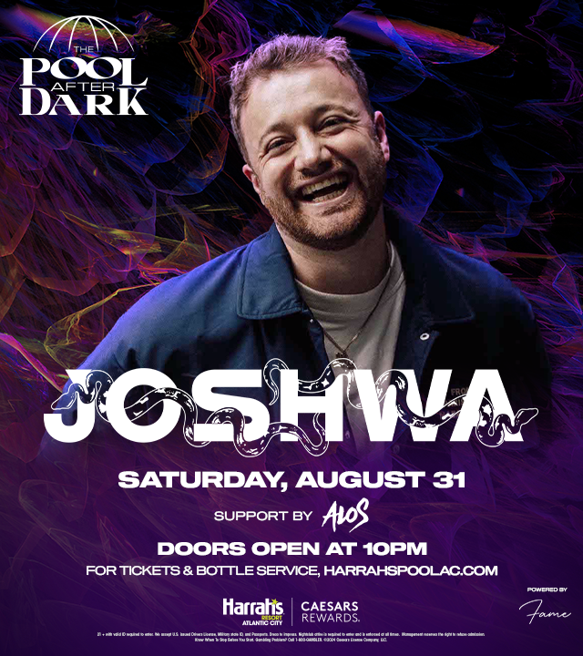 Experience the pinnacle of Atlantic City nightlife at The Pool After Dark this Saturday night with music by JOSHWA. The Pool After Dark is not just a club, it's an unforgettable nightlife experience. With a 3,500 sq. foot, 86,000-gallon pool at its center, this multi-level club features tropical designs, cabanas, and VIP sections. Enjoy the VIP experience by reserving a table, poolside daybed, cabana, or large-party bungalow, and let our bottle service servers provide first-class service.