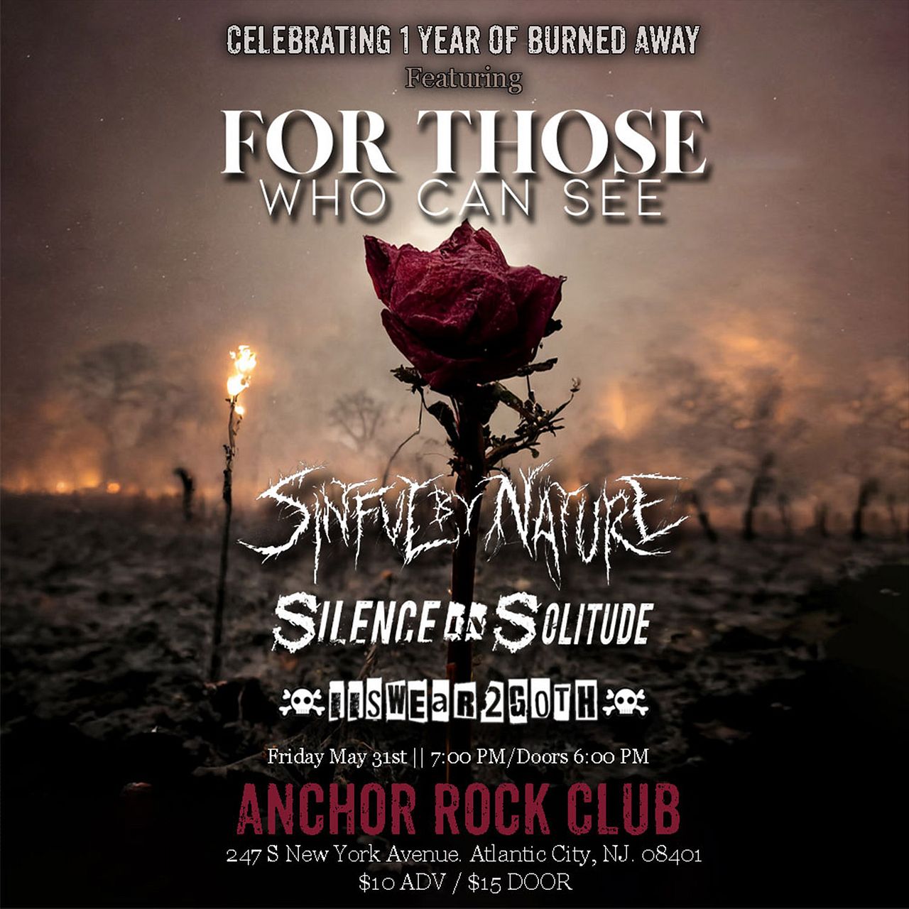 For Those Who Can See // Sinful By Nature // Silence In Solitude // I Swear 2 Goth Doors: 6:00 pm // Showtime: 7:00 pm // 18+ Anchor Rock Club // 247 S New York Avenue // Atlantic City NJ