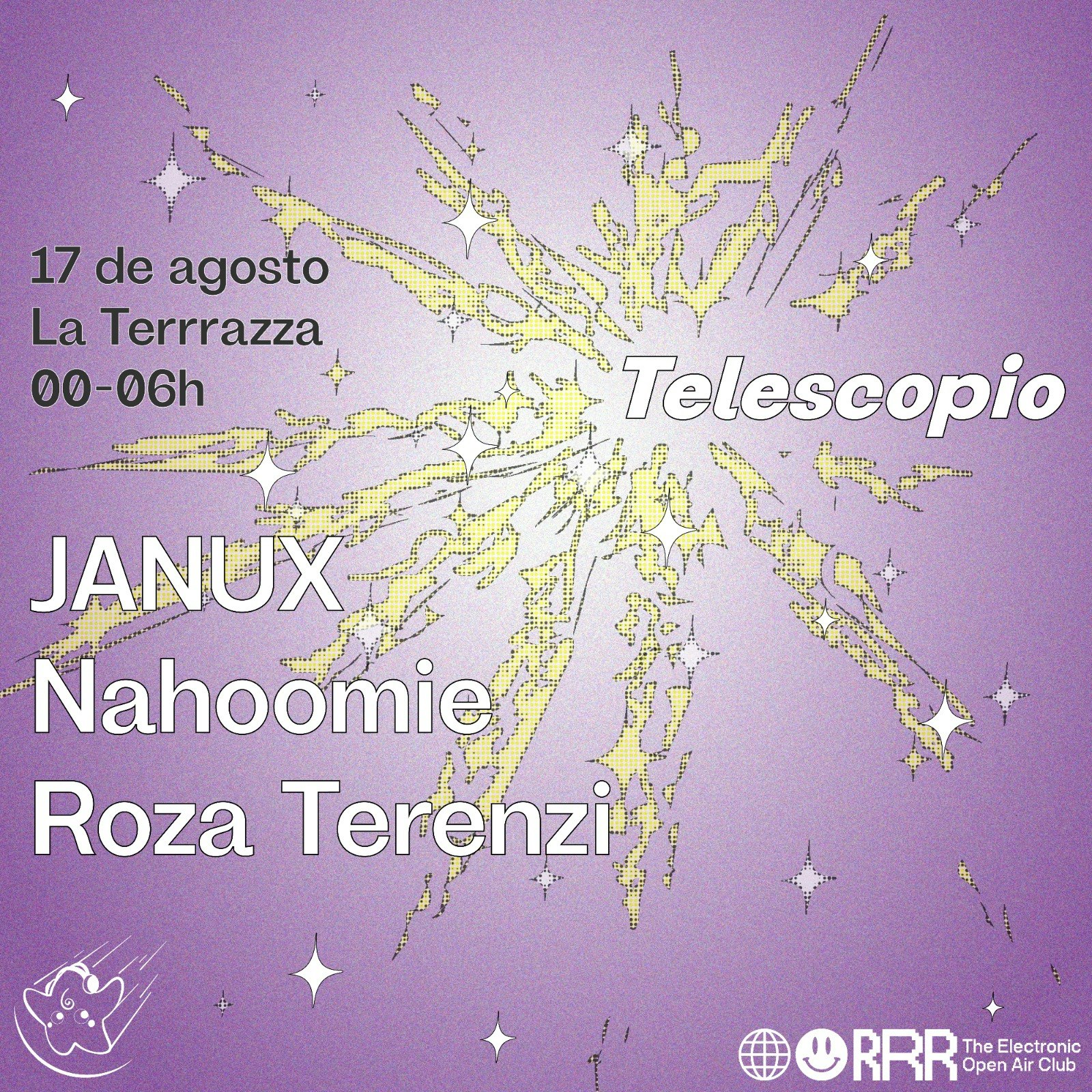 Esta noche vuelve Telescopio, la fiesta creada por la DJ Nahoomie, destello de la escena electrónica nacional, que nos introduce en su inconfundible cosmos musical. Una noche que nace con el anhelo de ver más allá, aproximándonos a través del baile a todas aquellas estrellas que tarde o temprano merecen ser contempladas. Porque en un universo repleto de cuerpos celestes a veces es complicado captar la luz sin precisar del momento y el medio adecuado. Por eso, de su mano nos trae una artista que goza de plena luminiscencia como Roza Terenzi, artista australiana cuya carrera es un tapiz tejido de influencias y un estilo listo para el club, basado en la electrónica experimental que representa la identidad y las experiencias vertiginosas de Roza en el ámbito de la música electrónica. Una noche para abrir los sentidos más allá de esta galaxia.