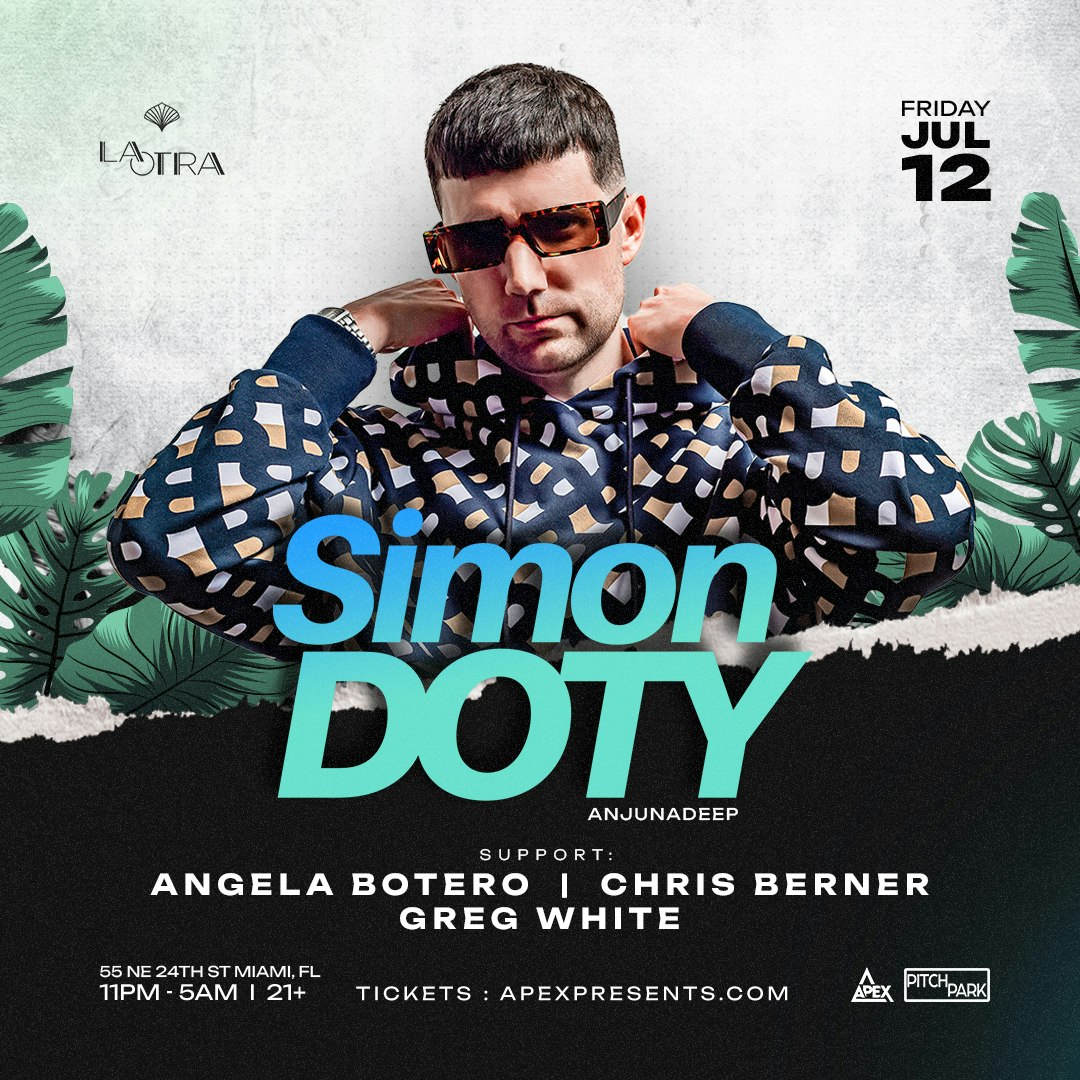 Anjunadeep Super star Simon Doty, Returns for a specail night in Miami Friday July 12th Make sure not to miss this event. Presented by Apex Presents x Pitch Park. This is an 21+ event