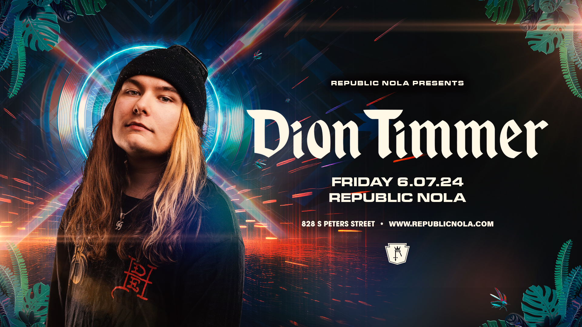 Republic NOLA Presents... Dion Timmer on Friday 6.7! Dion Timmer makes his long-awaited comeback on Friday 6.7 + support from GMUR + KAE! Get your tickets NOW!