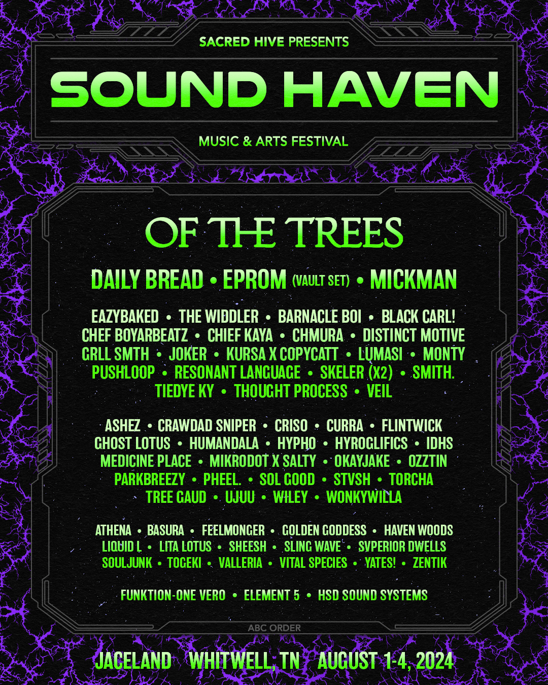 Sound Haven Music & Arts Festival returns to Jaceland on it's 6th anniversary with a legendary weekend of bass music on multiple high-end sound systems. Mind-blowing visual artists, extravagant craft vendors, tasty food, & unique art installations.