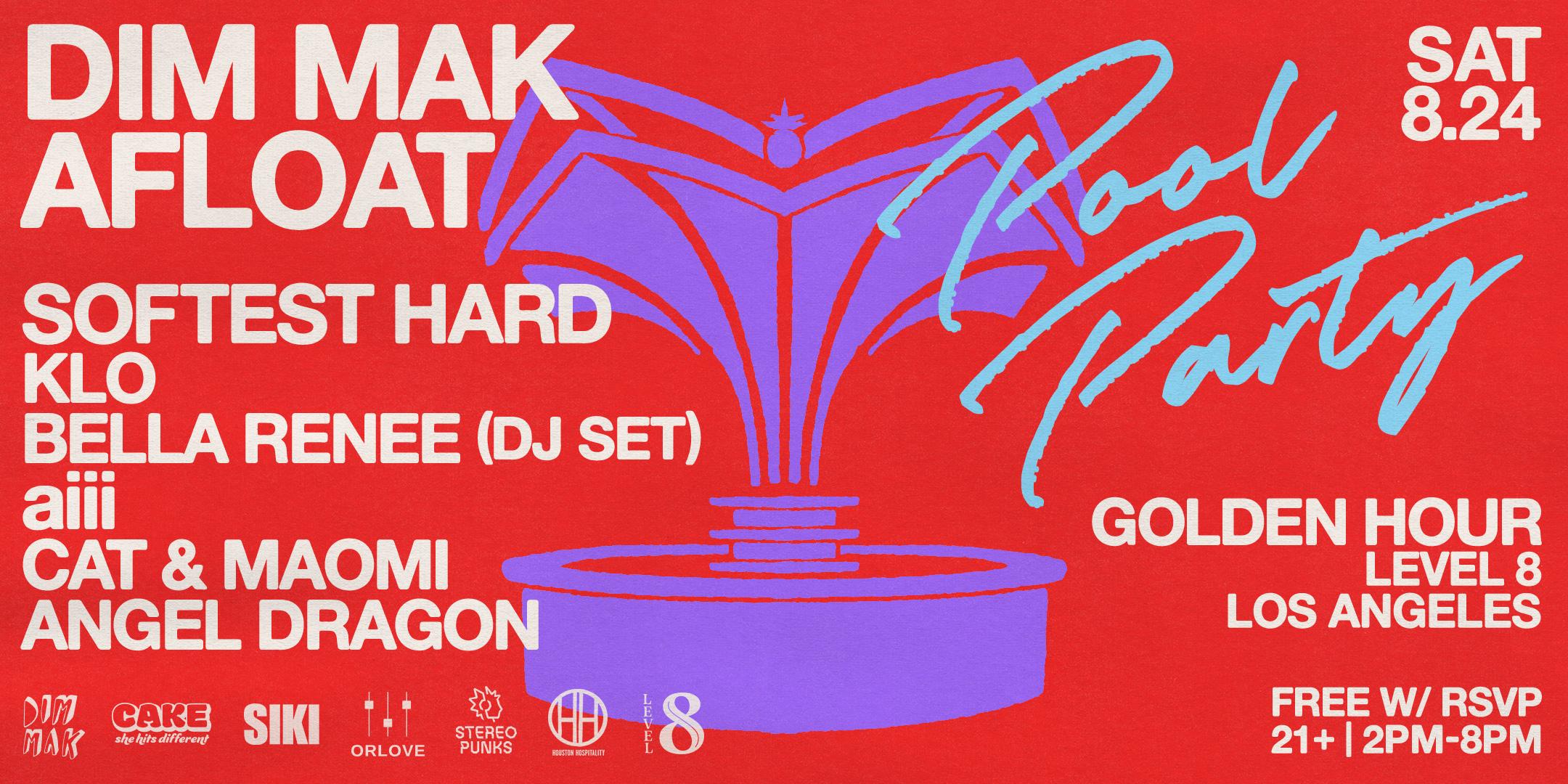 Who runs the world? GIRLS! Dim Mak Afloat is back at the pool, continuing their summer event series at Moxy Hotel’s new rooftop venue, Golden Hour. This time, we’re bringing out the ladies: Klo, Bella Renee (DJ Set), aiii, Cat & Maomi, and Angel Dragon to curate the sounds of the day, alongside very special guest, SOFTEST HARD, who just signed to the label. As always, you can expect great sets, signature cocktails, and beautiful views of Los Angeles. Powered by CAKE & SIKI.