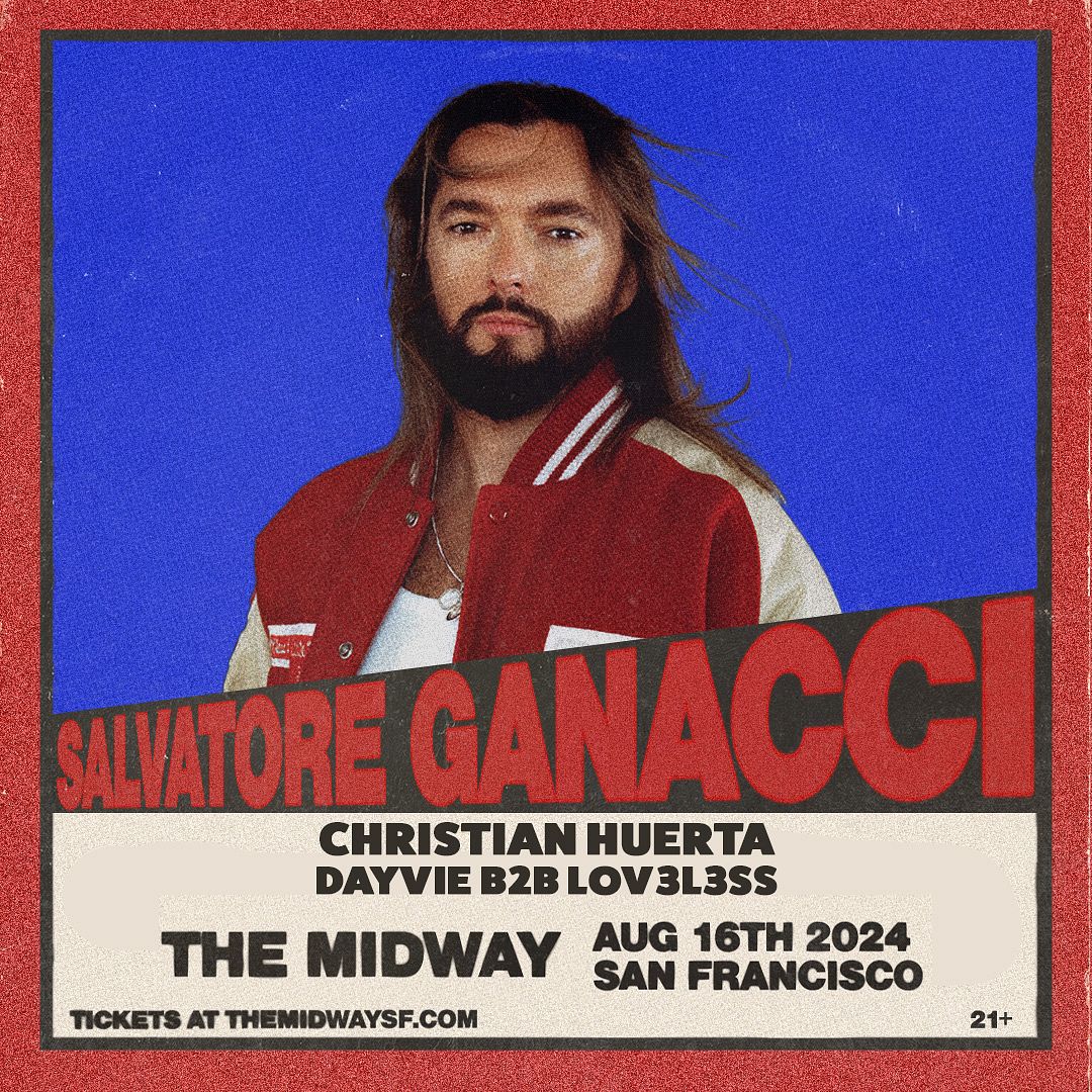 Tickets are on sale now! The Midway presents Salvatore Ganacci + support from Christian Huerta Dayvie b2b Lov3l3ss Friday, August 16th in RiDE, The Midway's main room. 21+, 900 Marin Street SF