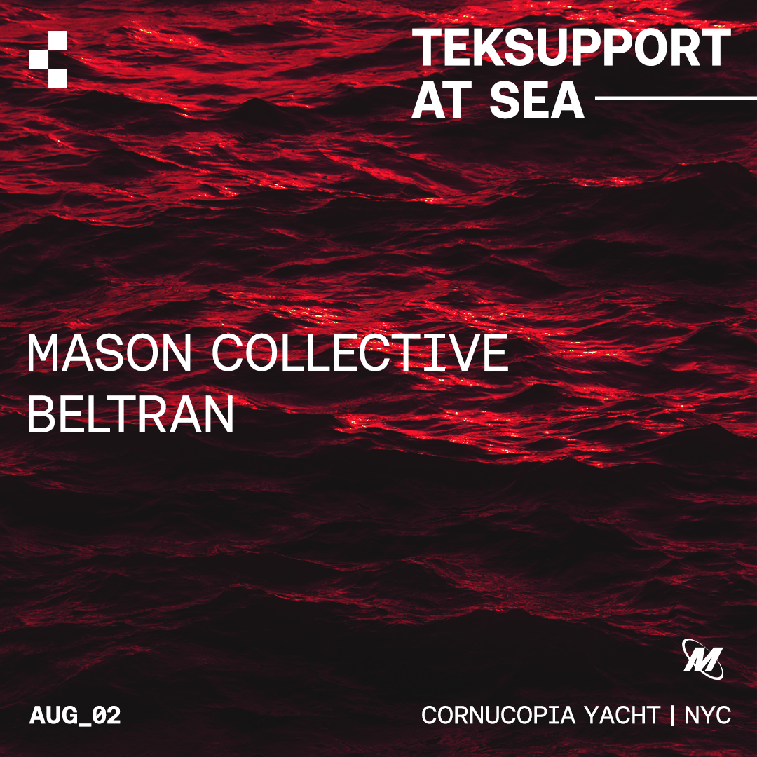 August 2: Mason Collective Beltran Cornucopia Yacht Table Reservations: WhatsApp: +1 (718) 614-2563 Email: info@tcepresents.com Pier 81 - Manhattan 5PM - 10PM 5PM - BOARDING (Pier 81) 6PM - SAILING 10PM - RETURN Presented by Teksupport. This is an 21+ event