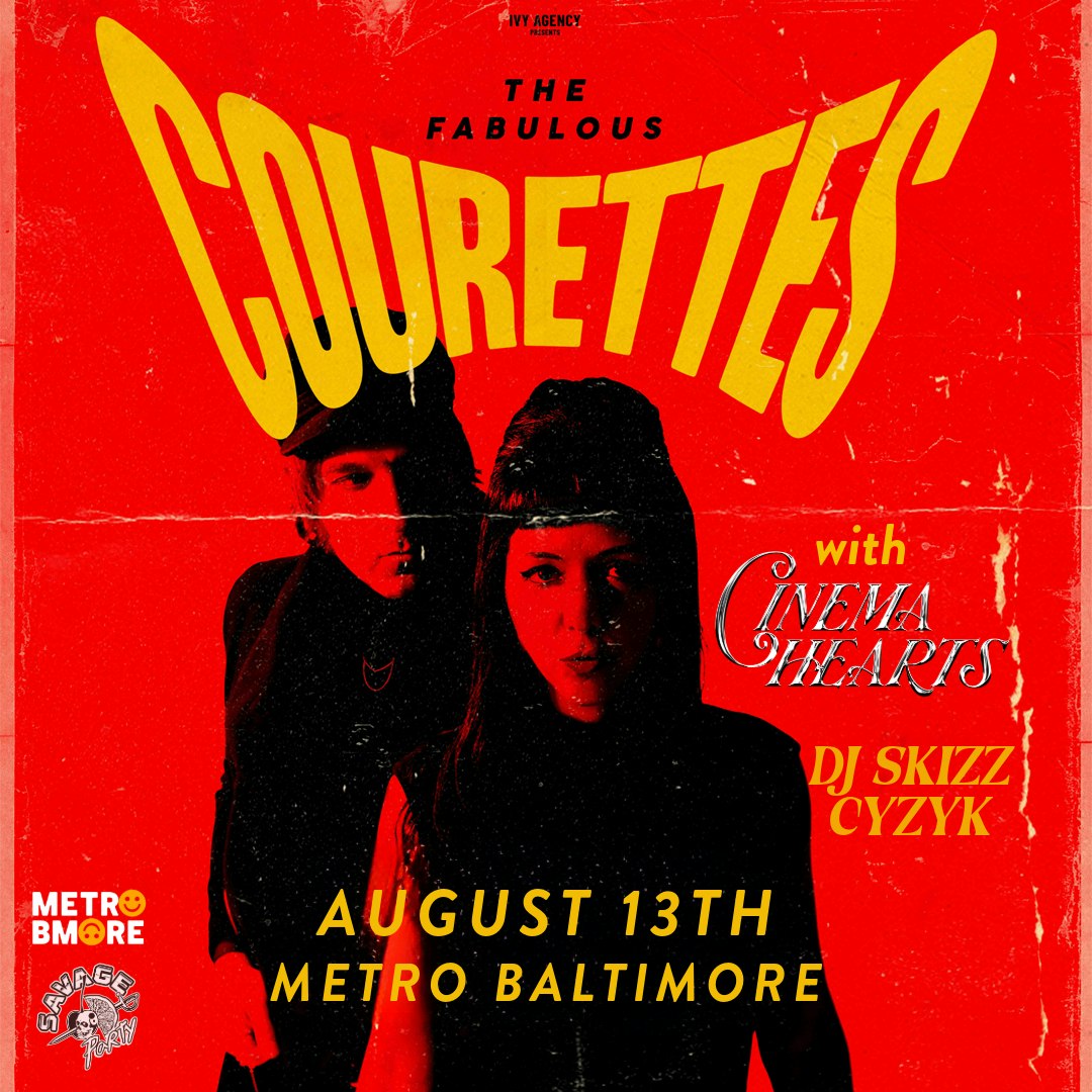 THE COURETTES w/ Cinema Hearts and DJ Skizz Cyzyk Tuesday August 13, 2024 Doors at 7:00 PM, Show at 8:00 PM All Ages Presented by Metro Gallery LLC. All Ages