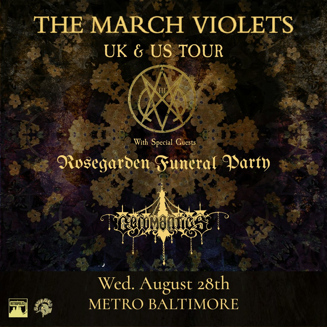 THE MARCH VIOLETS with Rosegarden Funeral Party and Ceromantics Wednesday Aug 28th, 2024 Doors at 7:00 PM, Show at 8:00 PM All Ages Presented by Metro Gallery LLC. All Ages