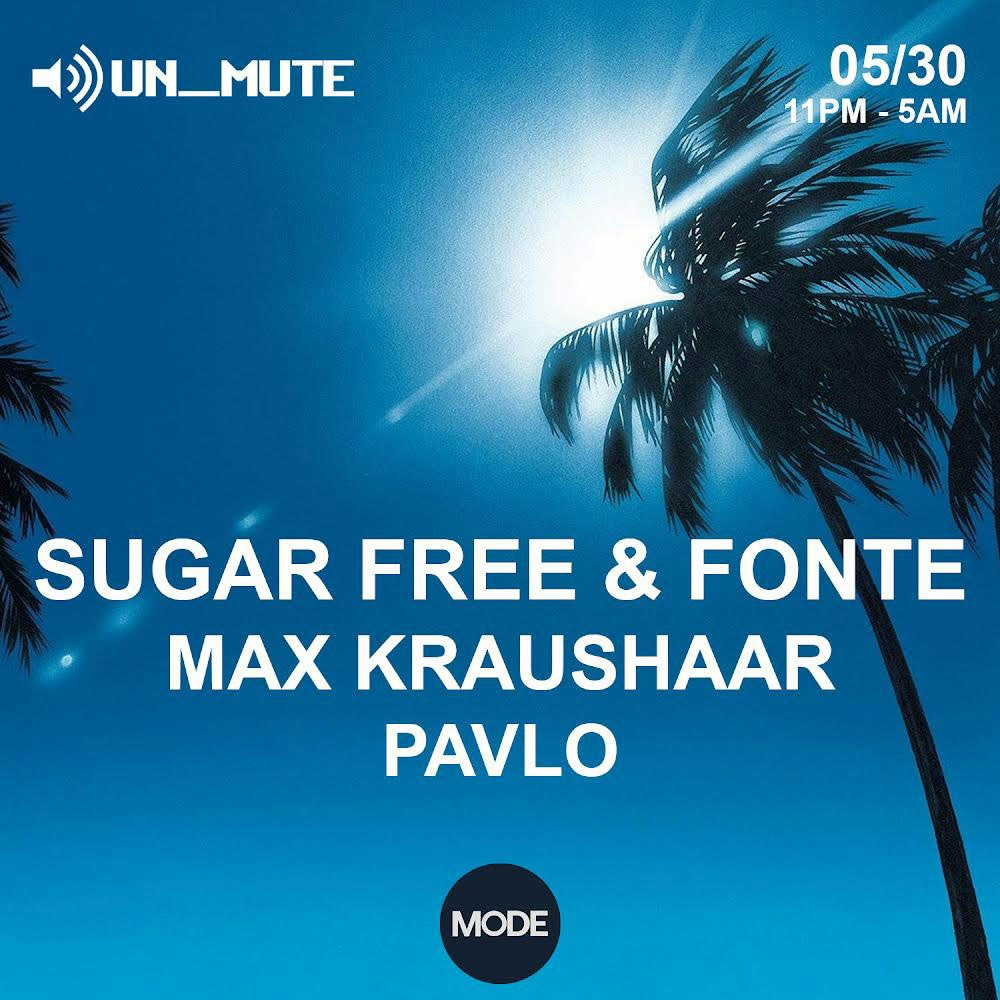 Un\_Mute presents Sugar Free & Fonte along with Max Kraushaar and Pavlo in the cocktiail bar. Presented by MODE. This is a 21+ event.