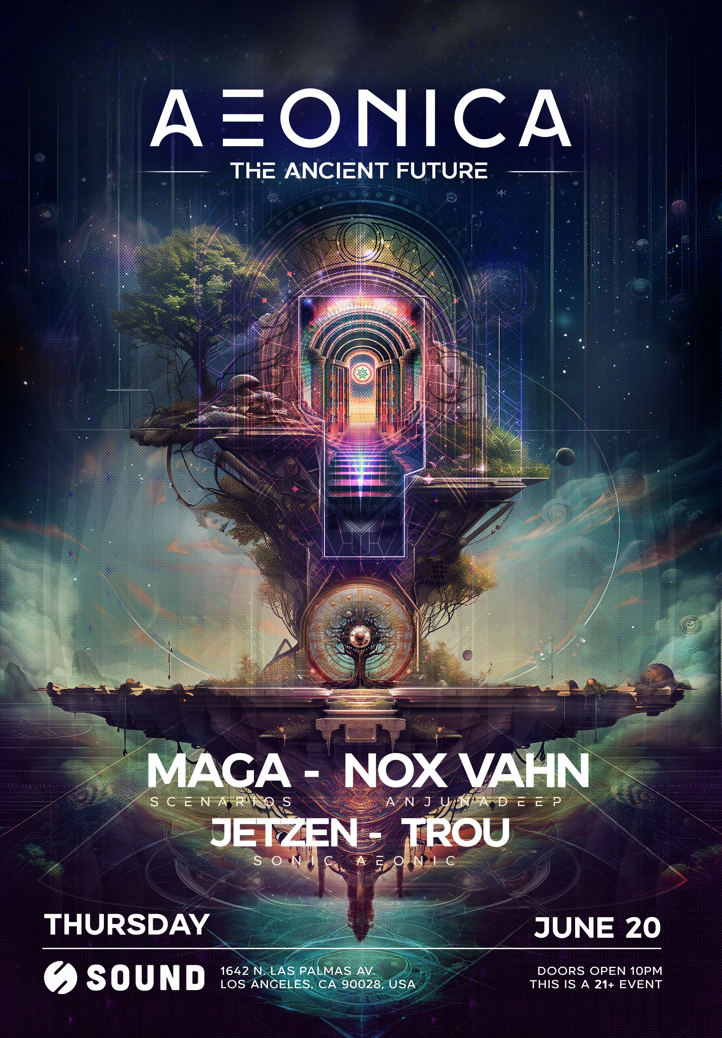 The Ancient Future. Experience the neo-primitive sounds of Mega, Nox Vahn, Jetzen and Trou. Engage with the Aeonica Guardians and request a Techaeon of Becoming to enter to win a Premium VIP Travel Package to Medellin, Colombia for Aeonica + Ritvales Festival and entrance to a special private event in LA.