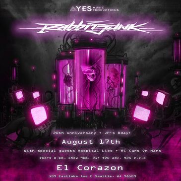 YES Music Productions presents: Rabbit Junk (20th Anniversary & JP's Birthday), Hospital Lies, plus RC Cars on Mars, at El Corazon