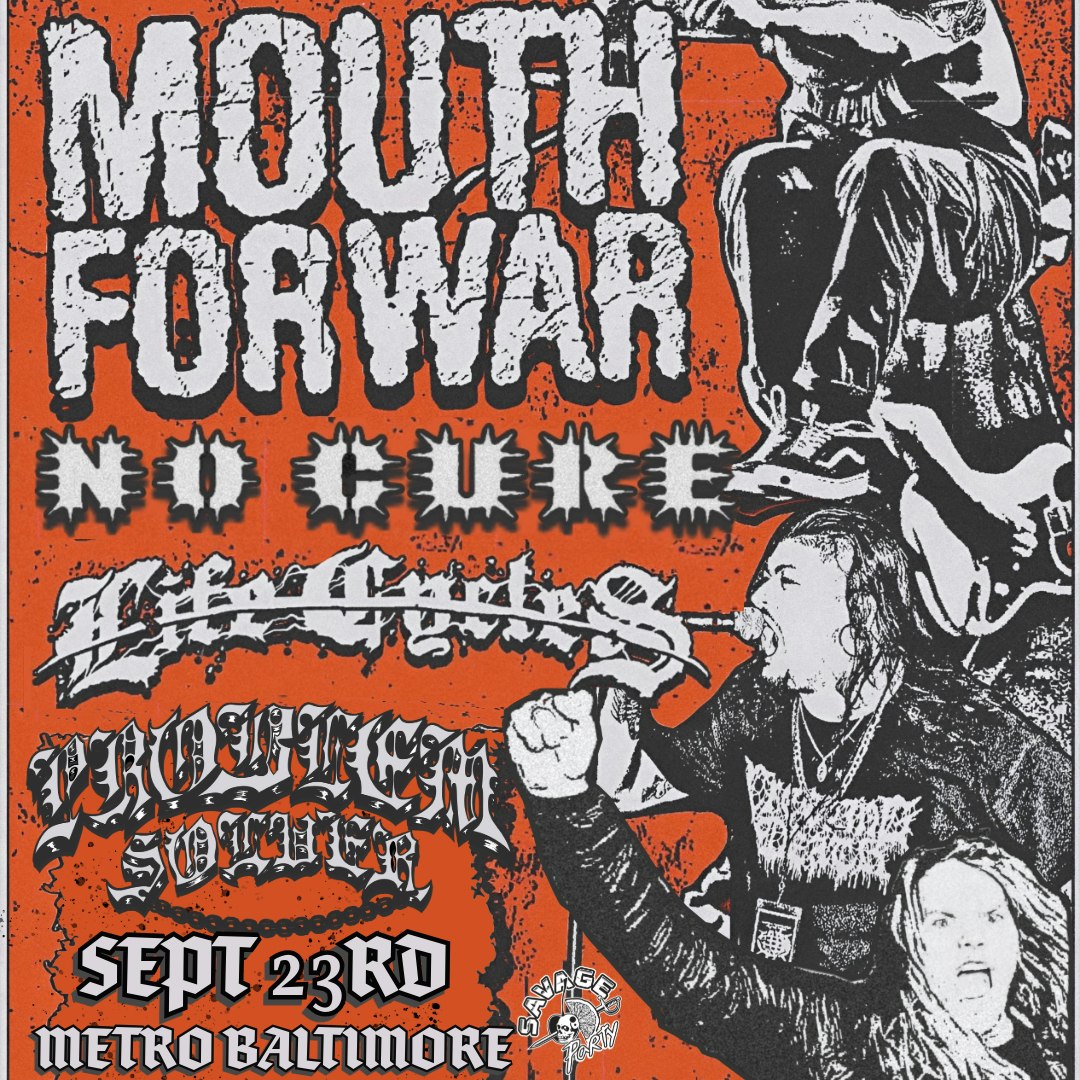 MOUTH FOR WAR w/ No Cure, Life Cycles and Problem Solver Monday September 23rd 2024 Doors 7:00 // Show 7:30 All Ages Presented by Metro Gallery LLC. All Ages