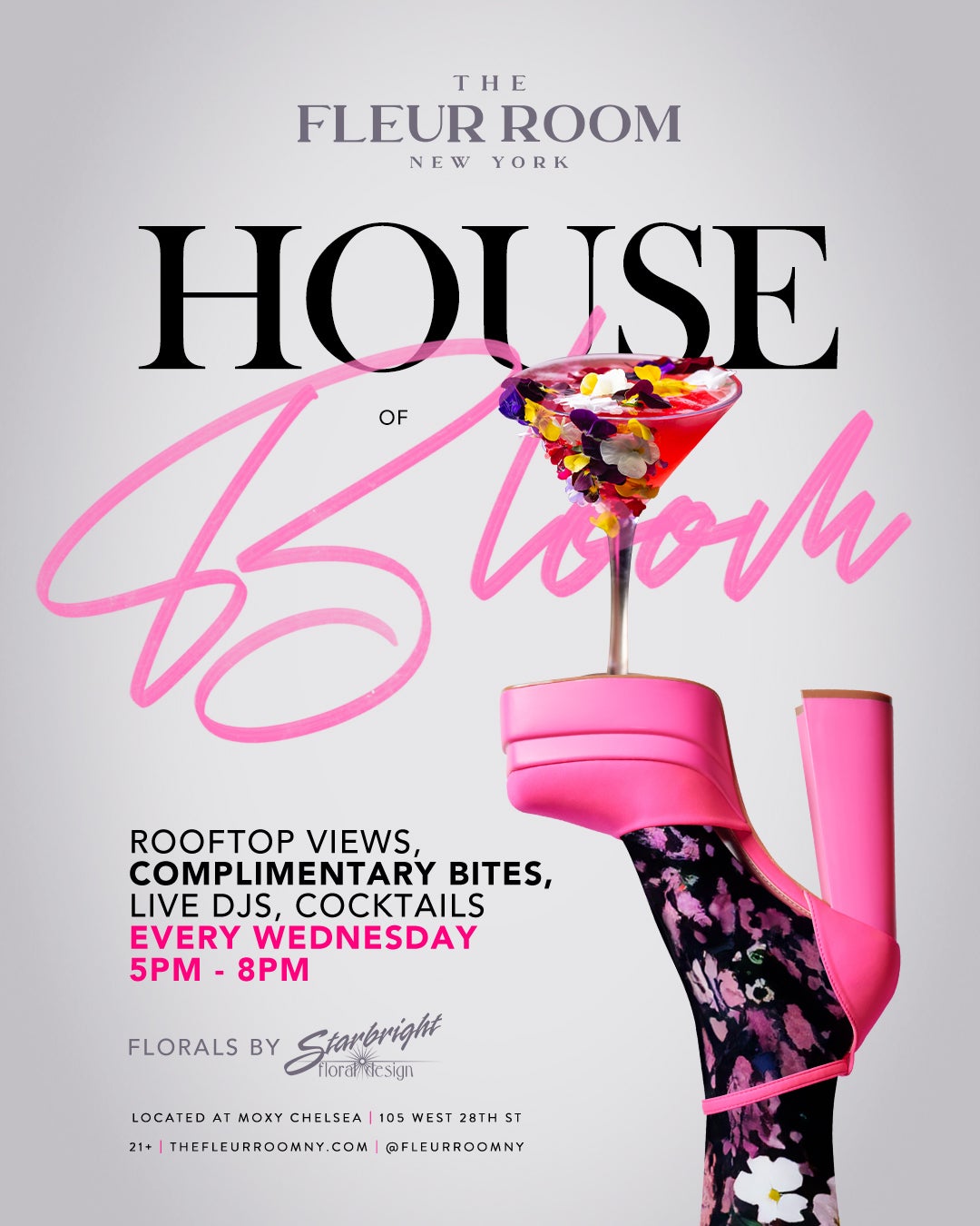 Elevate your Wednesday nights at our afterwork Happy Hour all season long! Every Wednesday, Happy Hour turns into a party called House of Bloom where we are turning up the house music with a live DJ, chic cocktails, complimentary bites, 360-degree views, and gorgeous florals from Starbright that you won’t be able to resist.