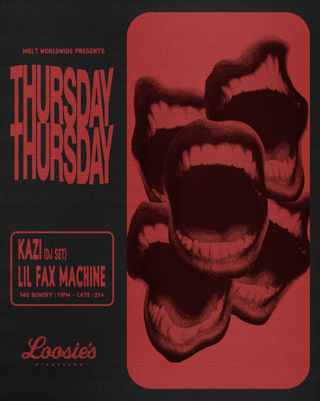 Entry by general admission at doorman discretion. Must be 21+
