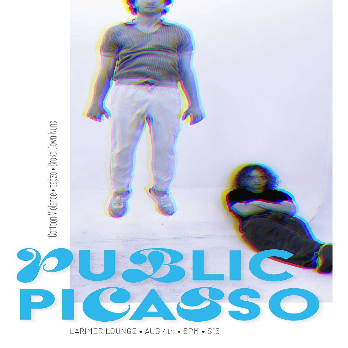 Larimer Lounge Presents Public Picasso with Cartoon Violence, cadzo and Broke Down Nuns on Sunday, August 4th. 16+, under 16 admitted with ticketed guardian