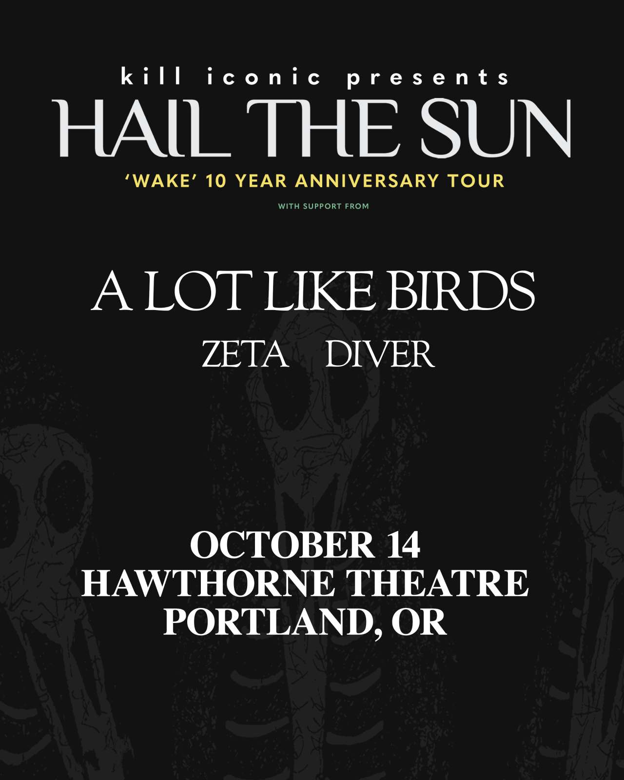 Mammoth NW Presents: HAIL THE SUN: “WAKE” 10 YEAR ANNIVERSARY TOUR A Lot Like BirdsZeta Diver Flat Out Monday, October 14th, 2024 6:30PM Hawthorne Theatre All Ages | Bar w/ valid ID No refunds or exchanges. All sales final.