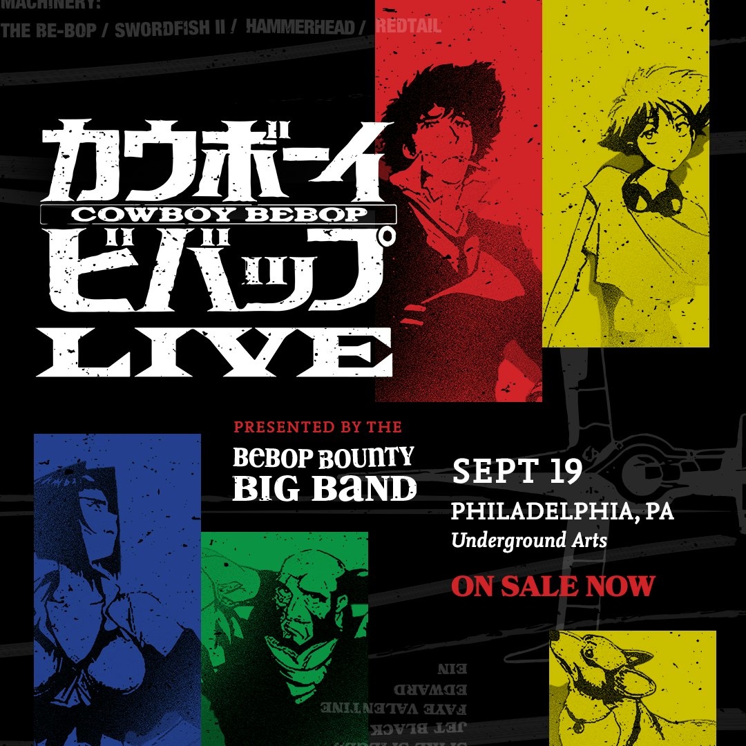 Cowboy Bebop LIVE is a complete multimedia experience highlighting the story of critically acclaimed anime, COWBOY BEBOP, on the big screen accompanied by live music from the soundtrack performed by the Bebop Bounty Big Band.