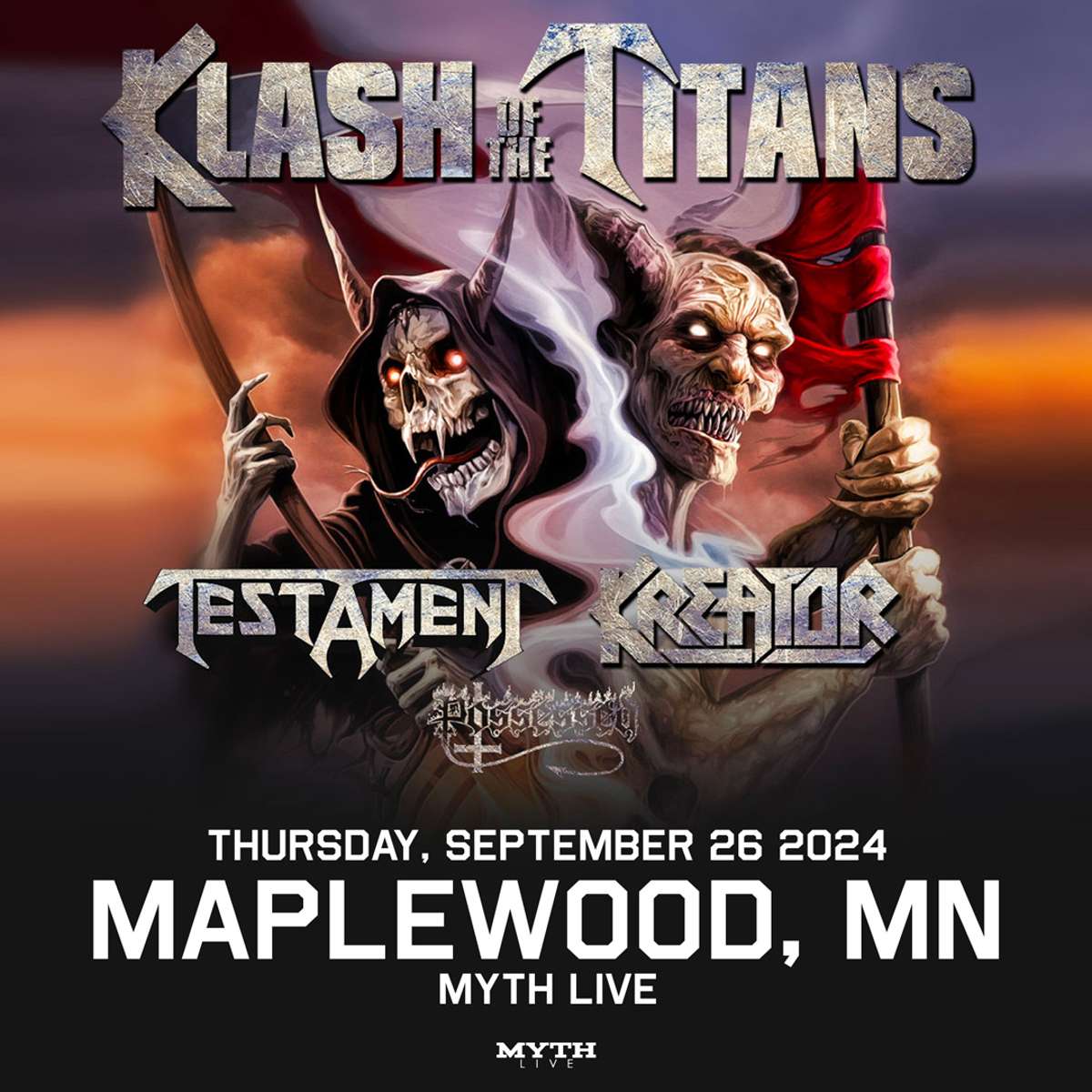 Myth Live Presents Testament & Kreator with Special Guests Possessed All Ages Doors 6pm/ Show 6:50pm Public on Sale May 3, 2024 10am