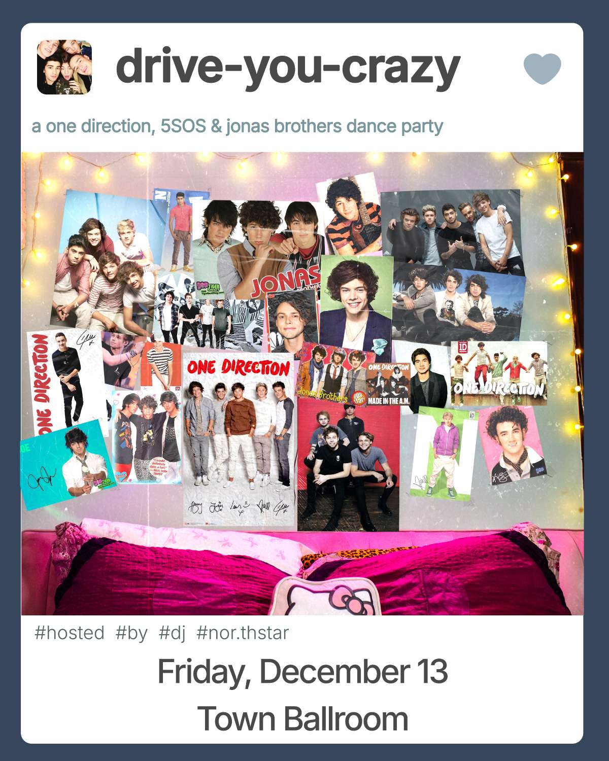Funtime Presents Drive You Crazy A One Direction, 5SOS & Jonas Brothers Dance Party Hosted by DJ Nor.th Star Ages 18+ Government Issued ID Required