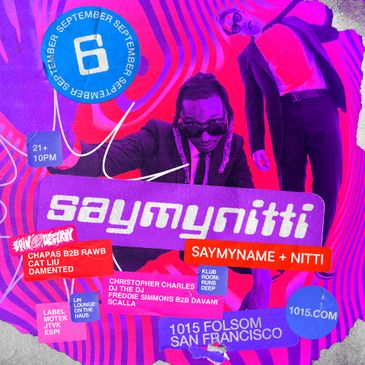 FRIDAY SEPTEMBER 6th, 2024 DJ Dials & 1015 Folsom Present: SAYMYNAME + NITTI = SAYMYNITTI + More TBA 10pm • 21+ Only
