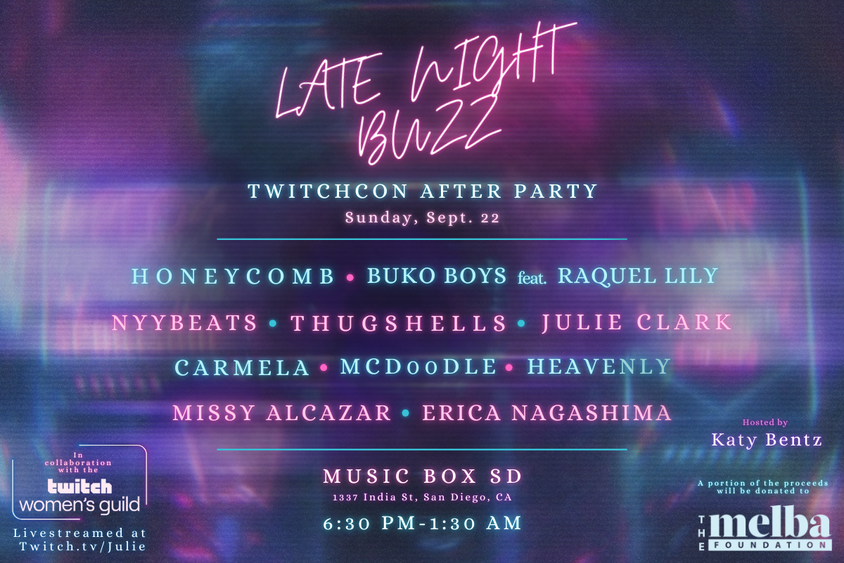TwitchCon After Party, Honeycomb, Thugshells, Buko Boys, NyyBeats, Carmela, Julie Clark, Heavenly, Missy Alcazar, Erica Nagashima, McD00dle