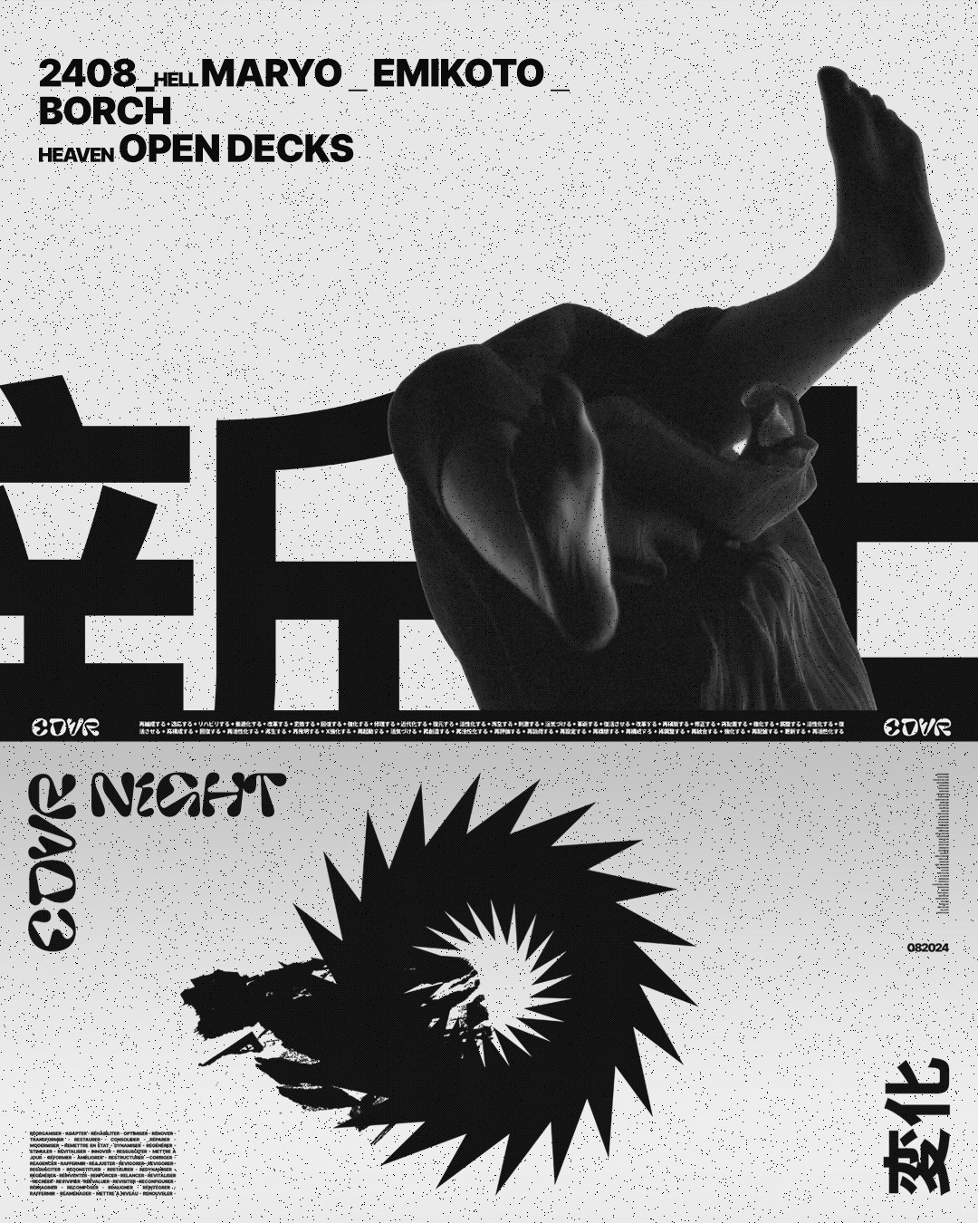 **El próximo 24.0**8 tenemos otra noche especial en Cadavra para exaltar el talento de nuestra escena local y nacional **w/ Maryo, Emikoto & Borch** at the Hell, y un nuevo **Paradise x Open Decks** para continuar descubriendo nuevos sonidos y artistas emergentes.