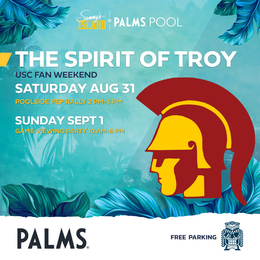 Sunkissed Saturdays will be ushering in the 2024 college football season with some fun in the sun. Doors open at 10am. Dj sara and the Dancing DJ's will be opening up for a special performanceJoin the Trojan Marching Band for a free pep rally at The Palms Pool before the Trojans take on LSU at the 2024 Vegas Kickoff Classic. Featuring the USC Song Leaders and USC Spirit Leaders, the event is open to all Trojan fans. Come enjoy the sunshine and spirit from 2-3pm.