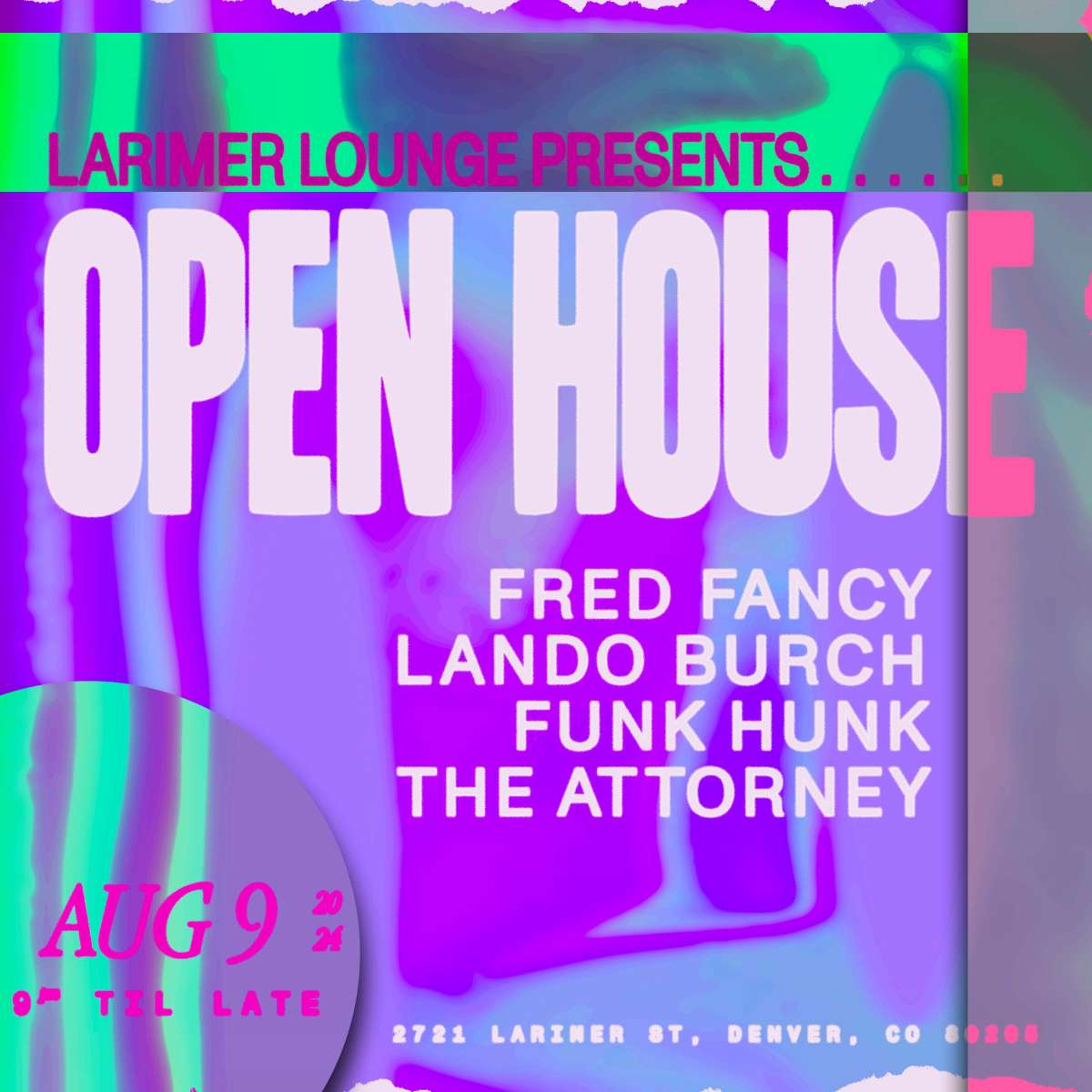 Larimer Lounge presents Open House Featuring Fred Fancy, Lando Burch, Funk Hunk and The Attorney (FREE EVENT) on Friday, August 9th.