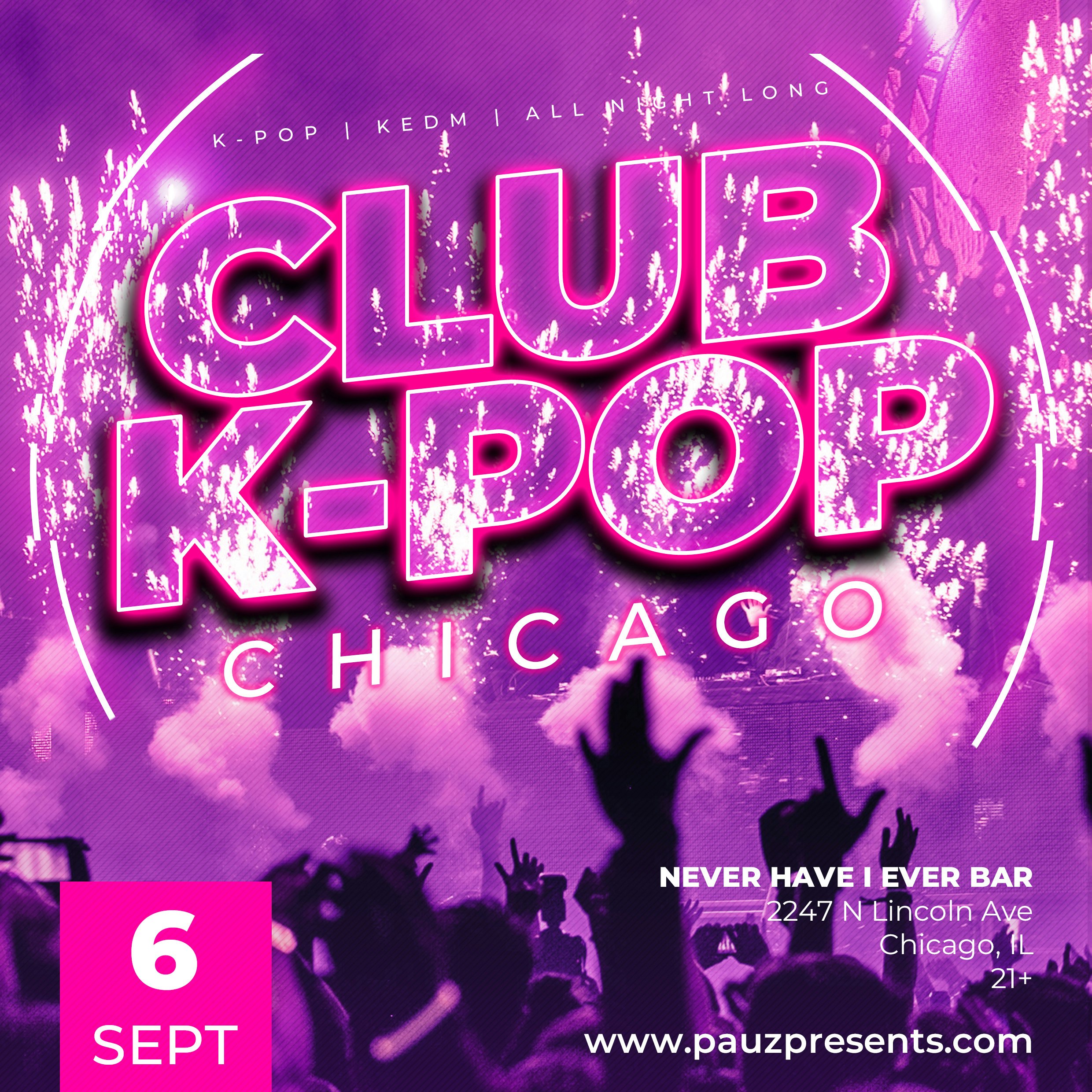 Dance the night away to the best K-Pop and K-EDM. All night long! Light sticks encouraged <3 Good vibes only! Song requests are welcome on Instagram! @pauzpresents Presented by PAUZ Presents. This is a 21+ event.