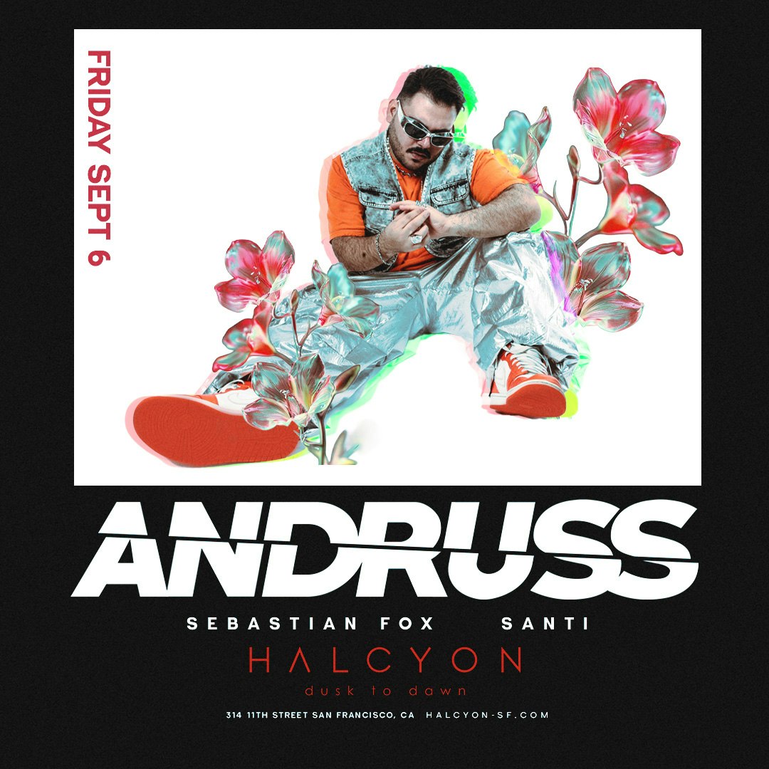 ANDRUSS the Mexican-born chart climbing phenom makes his hotly-anticipated US debut! SANTI + SEBASTIAN FOX support Presented by Halcyon. This is a 21+ event