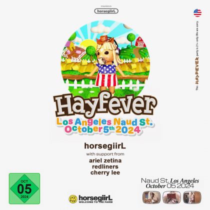 The giant haybale apocalypse inches closer, but horsegiirL is here to save the day with Hayfever! Join us at this very special US show on October 5 at Naud St. in DTLA. Tickets are 90% sold out