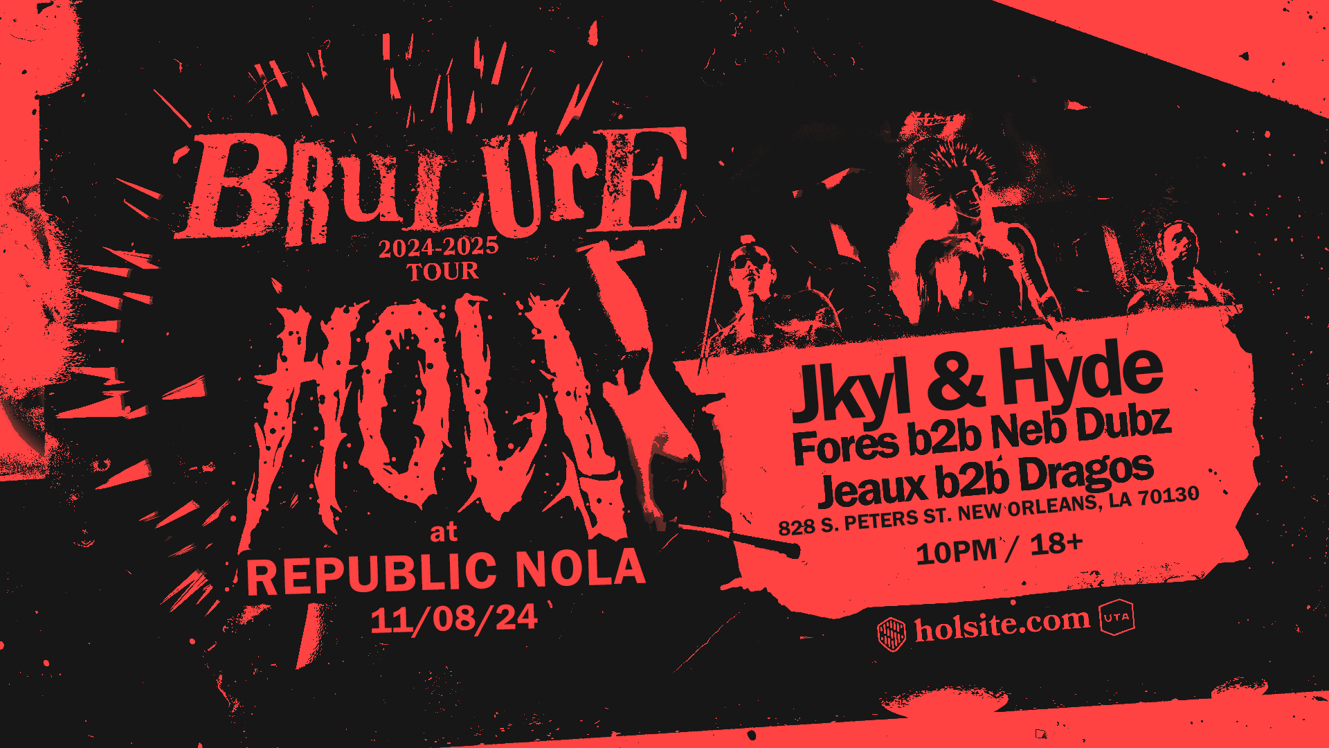 Republic NOLA Presents... HOL! on Friday 11.8.24! HOL! 's 'Brulure' Tour is coming on Friday 11.8.24 + support from Jkyll & Hyde + Fores b2b Neb Dubz + Jeaux b2b Dragos!