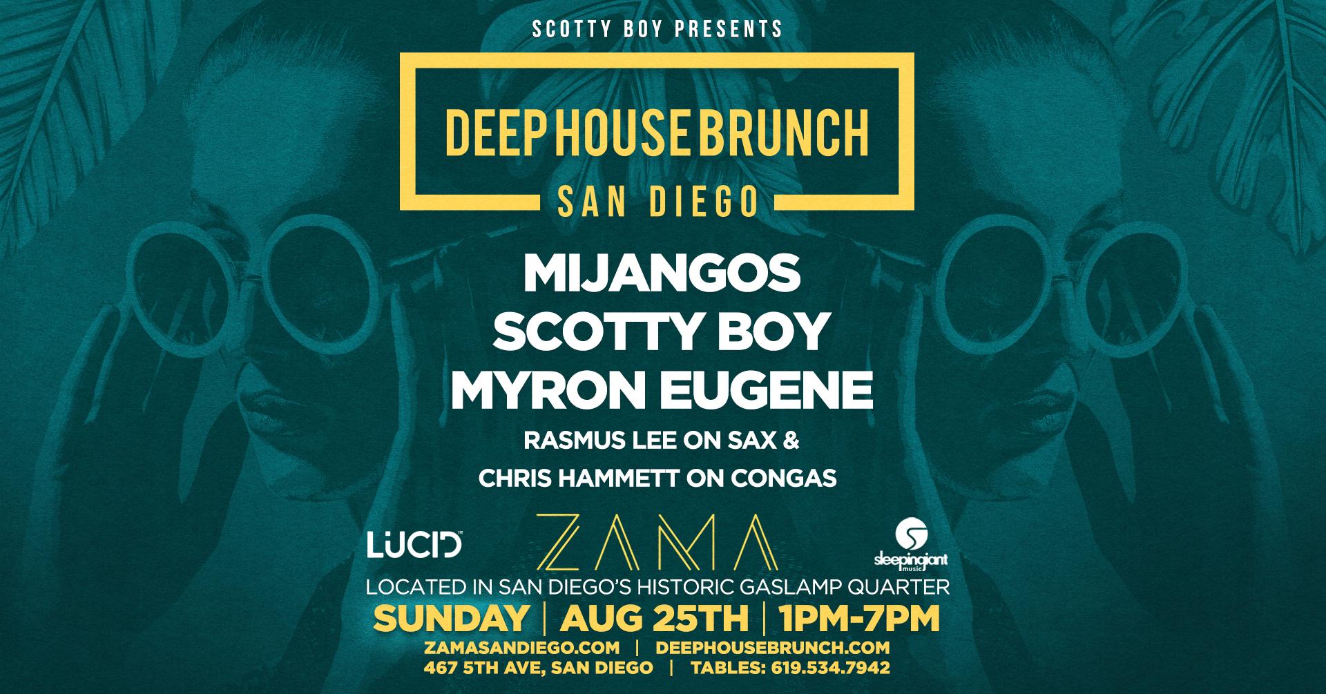 Zama 467 5th Ave. San Diego, CA 92101 Deep House Brunch returns to San Diego! Los Angeles's legendary day party heads to San Diego! Sunday, August 25, 2023 Zama: 467 5th Ave., San Diego Doors 1pm // 21+