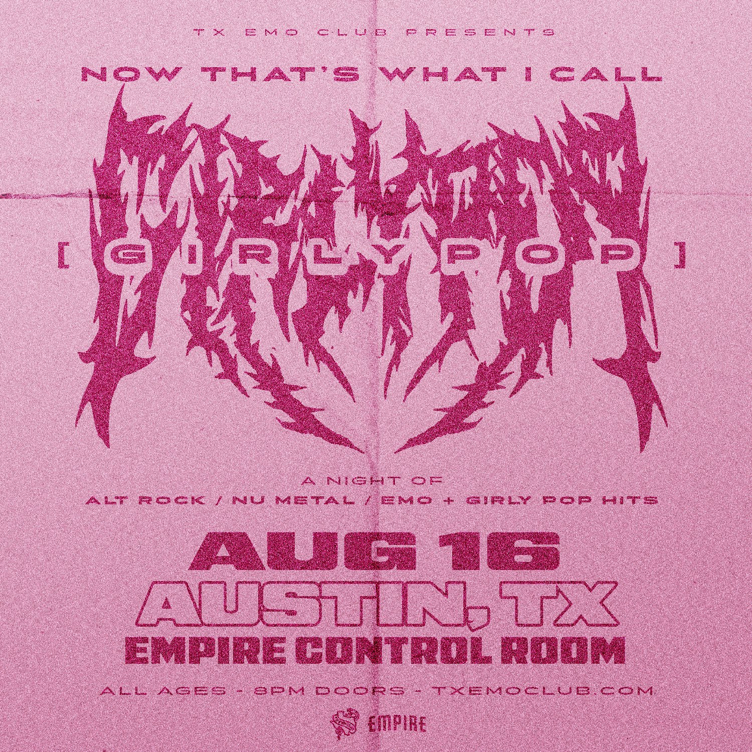 Calling all girly pops that just wanna break stuff - let’s take it back to the 90s and early 2000s for a night of all the good sh\\\*t. Nu metal anthems, emo hits, alternative deep cuts and so much more. Let the bodies hit the floor as we dance and scream all night long to Limp Bizkit, Korn, System of a Down, Rob Zombie, My Chemical Romance, Evanescence and more will bring you back to life.