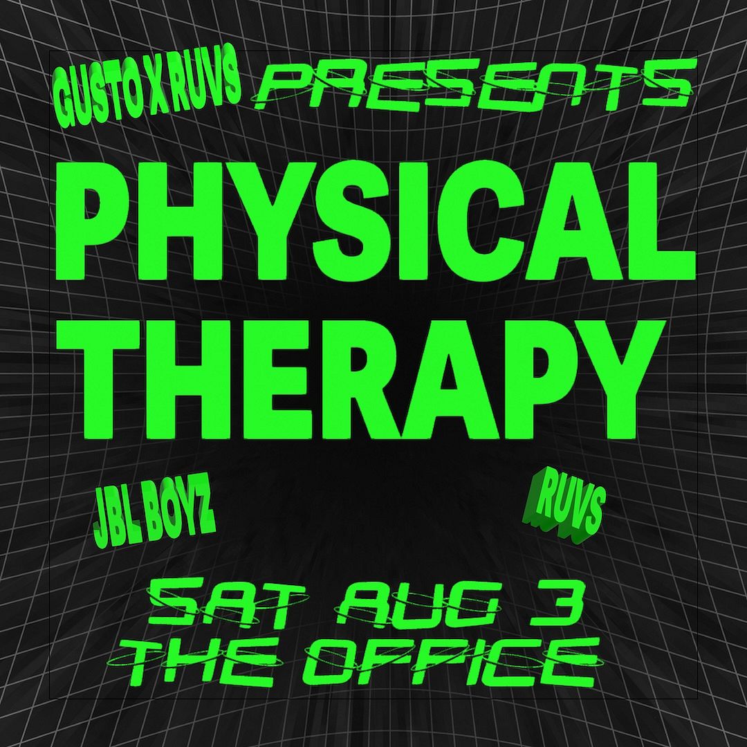 RUVS x Gust Presents: Physical Therapy 8.3.24 The Office Doors 10pm | 21+ Free parking at Walgreens across the street from the venue.